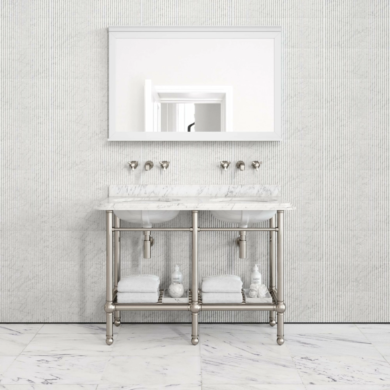 The double vanity unit is crafted from our radiant polished nickel coating, exclusive to the Deco collection, making it the perfect choice for styling with our polished nickel taps, showers and accessories of the same glowing tone.