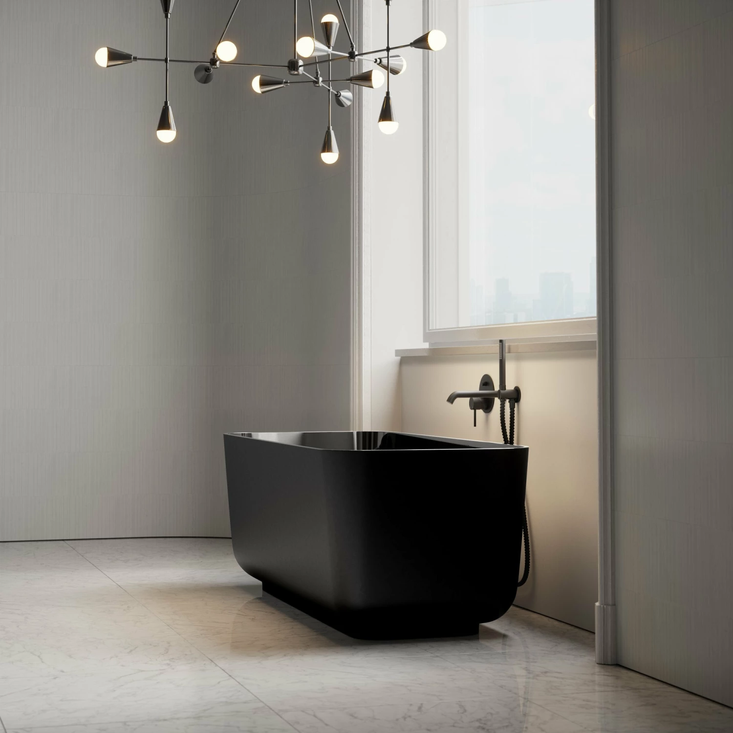 A luxury, contemporary design, the Benoit Matte Black Bath adds a cosmopolitan, chic aesthetic to your bathroom interior.