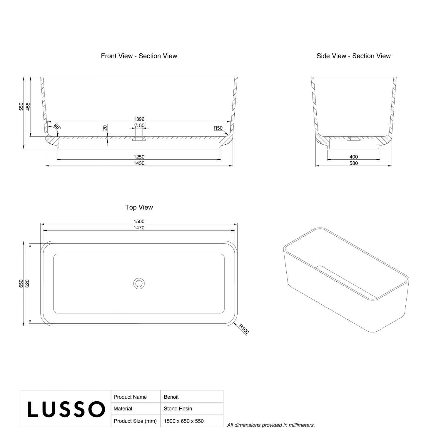 The rectangular structure is deceptively spacious, achieving an unparalleled bathing experience. Expertly crafted from our signature stone resin which provides unbeatable strength and discernible durability. Our stone baths are designed to last the years which is why they come with a lifetime guarantee.
