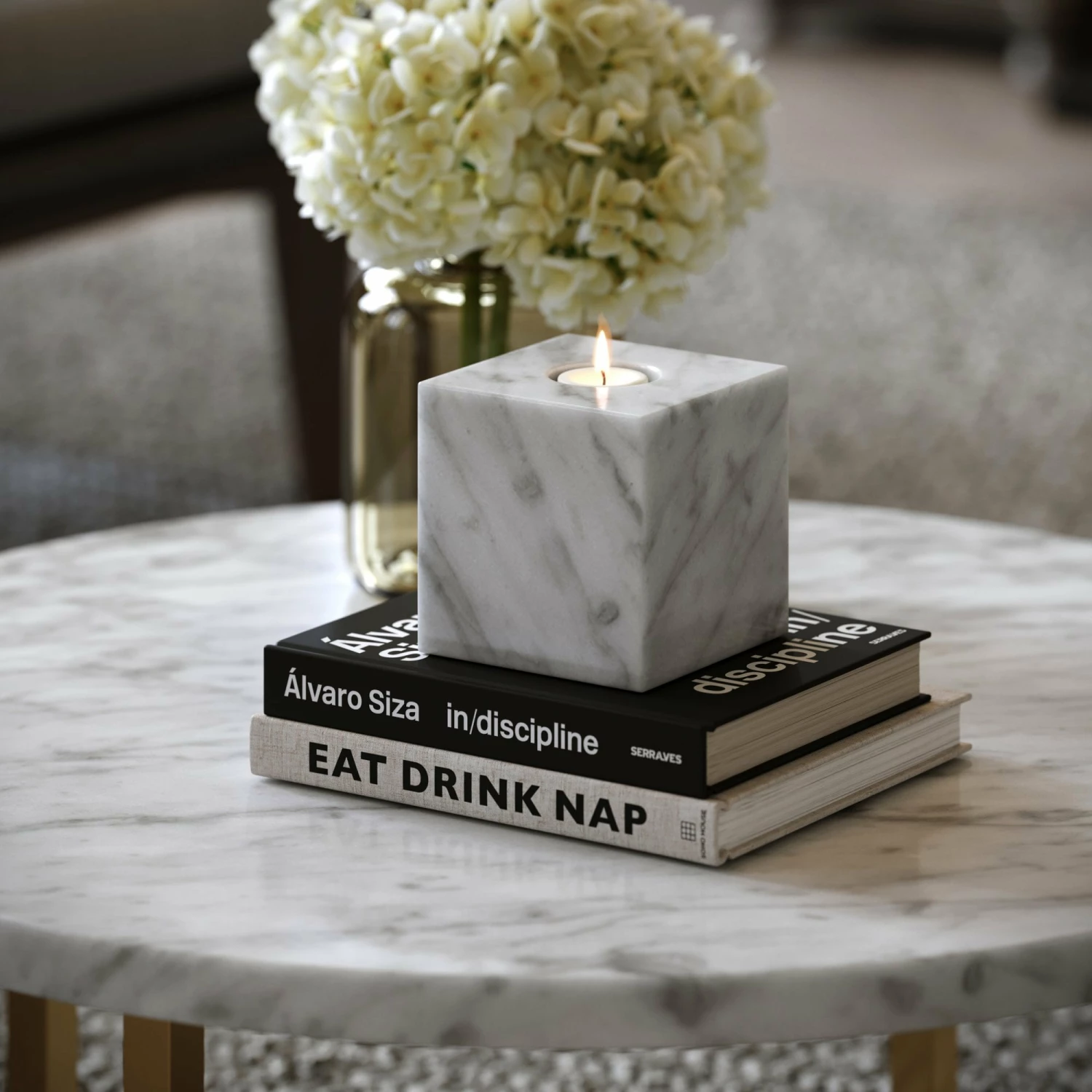 Model: Cassini Carrara Marble Square Candle Holder