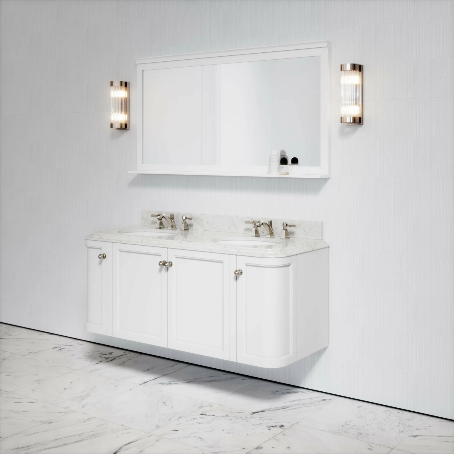 Featuring a double built-in basin, the Charsley is designed to offer luxury living for two, while its size offers easy placement in a larger proportioned bathroom. The wall mounted vanity unit is also crafted from durable marine grade plywood – designed to offer exceptional moisture resistance – that is beautifully primed for a long-lasting finish. Cove ogee bevelling to the edges showcases distinctive Art Deco notes.
