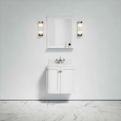 With the use of elegant polished Carrara marble to the countertop, alongside a traditional oval built-in basin, the Charsley Wall Hung Matte White Vanity Unit offers palatial bathroom luxury. In keeping with the Art Deco influence, the wall mounted vanity unit has also been finished with cove ogee bevelled edging to the marble.