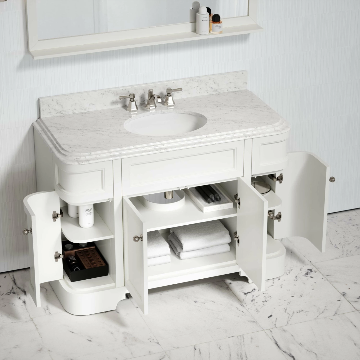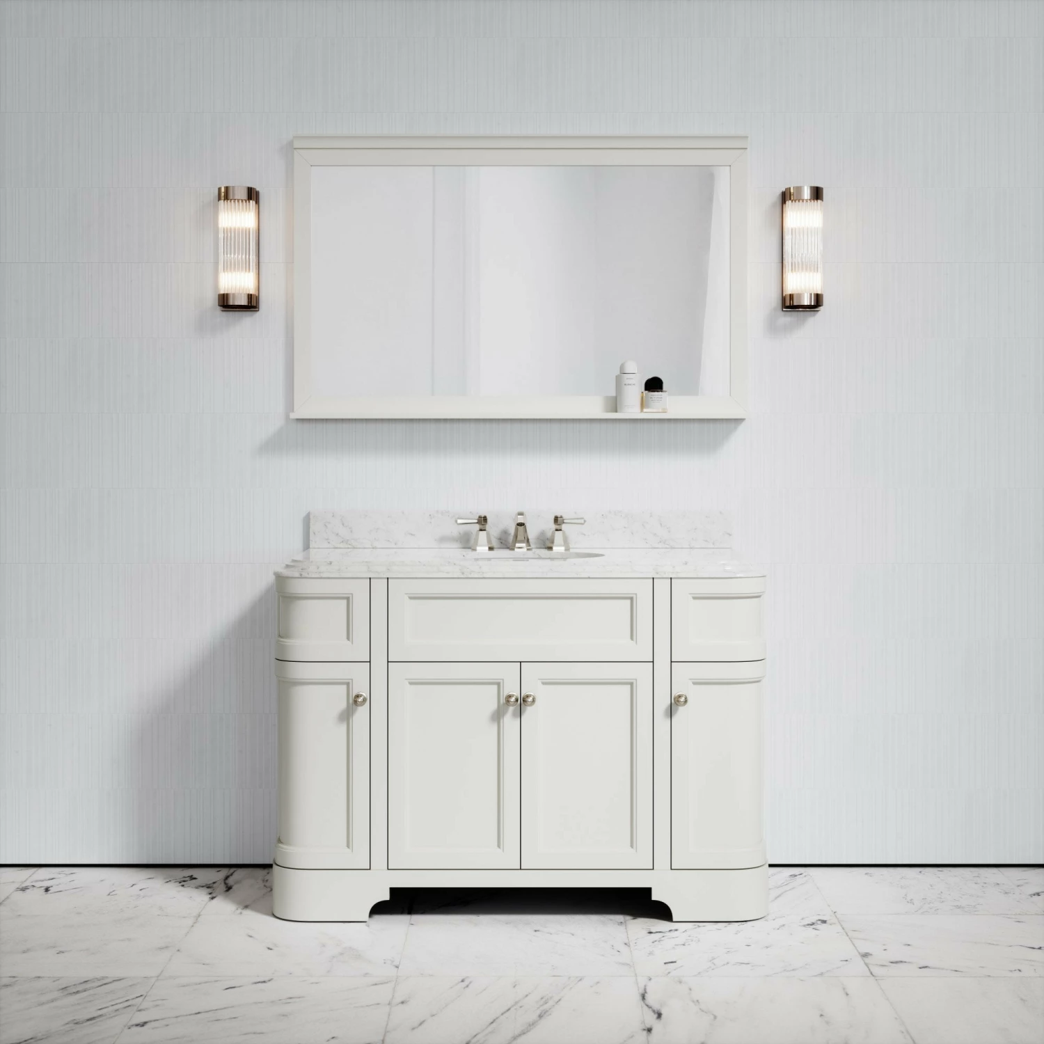 Designed at 1200mm wide, the Connaught vanity unit is designed for spacious bathrooms, and provides generous storage for uncluttered living. The bathroom vanity has been designed with soft closing cabinet doors with a push to open mechanism, eliminating the need for handles, unless preferred. If you do wish to add handles, the vanity’s concealed hinges allow you complete freedom over the finish of the accompanying bathroom fixtures.