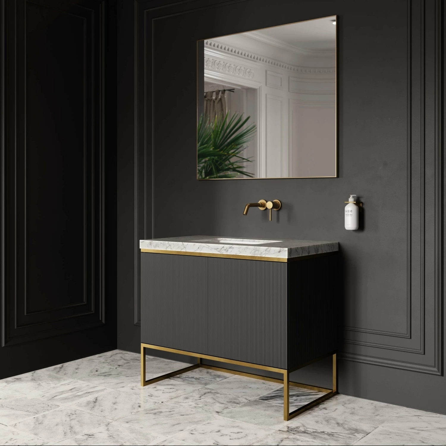 Our Couture collection of vanity units is defined by modern fluting, beautiful Carrara marble and striking brushed gold framework, that comes together to offer exclusive luxury for the home.