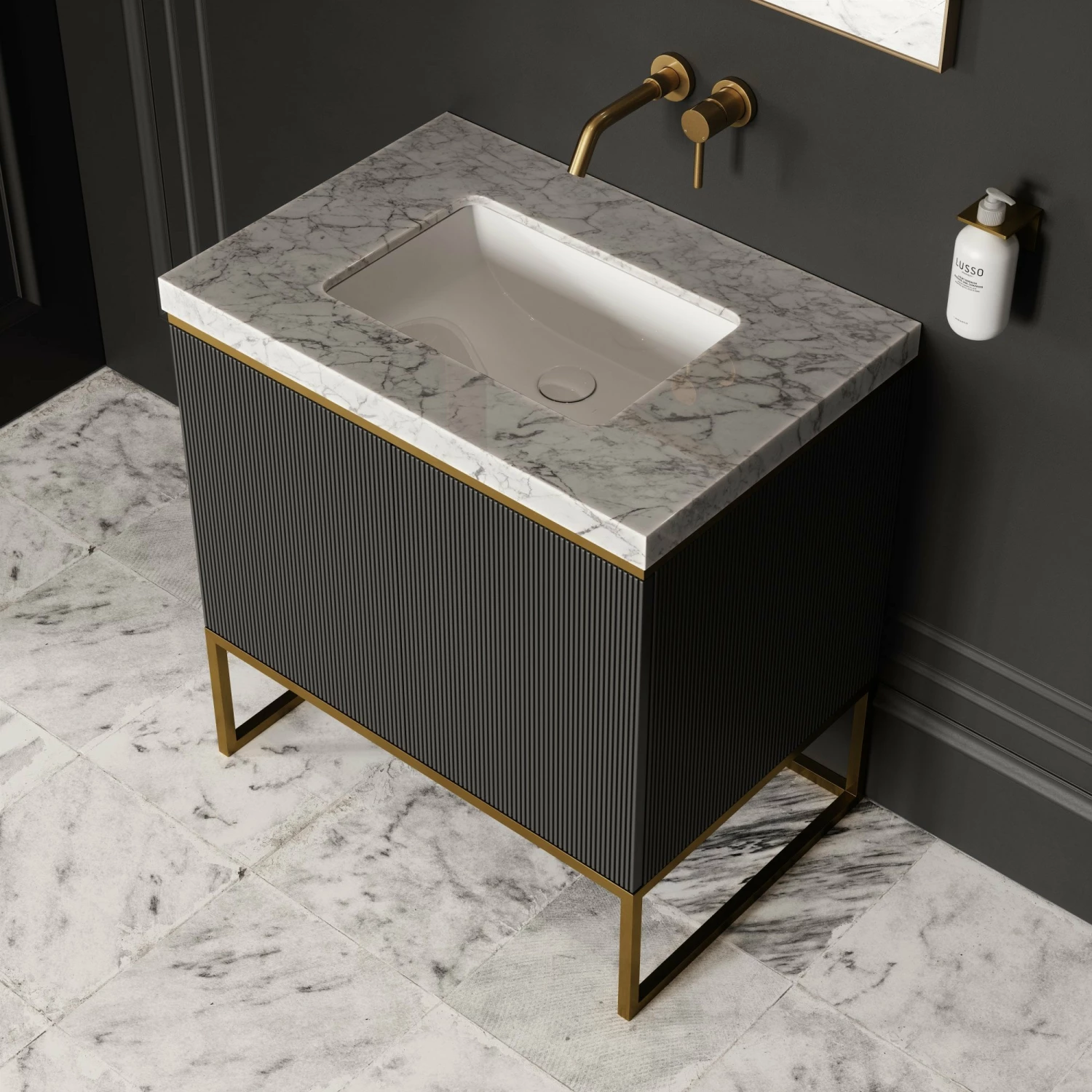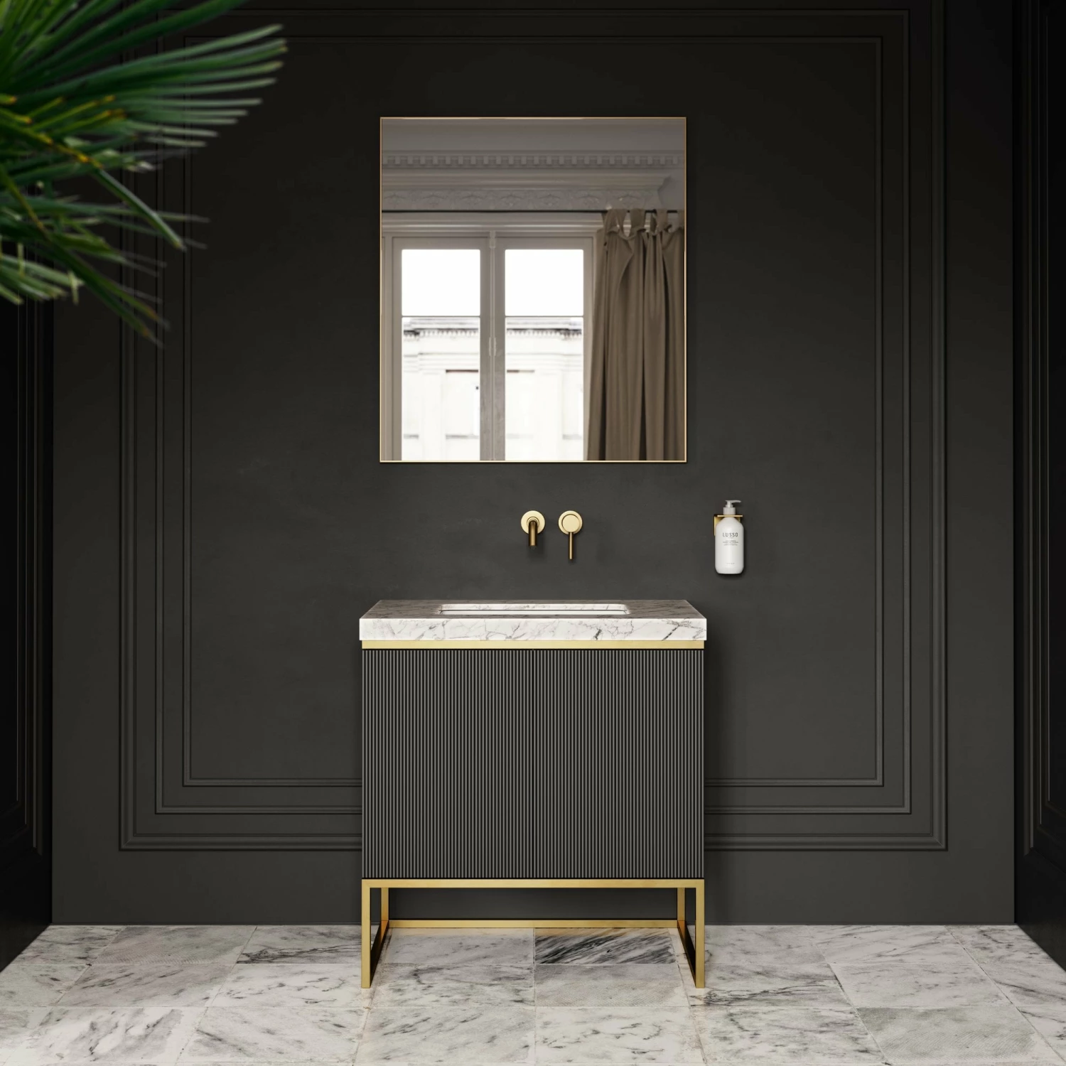 Our Couture collection of vanity units is defined by modern fluting, beautiful Carrara marble and striking brushed gold framework, that comes together to offer exclusive luxury for the home.