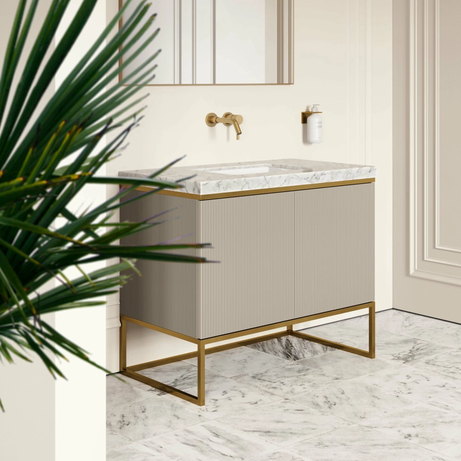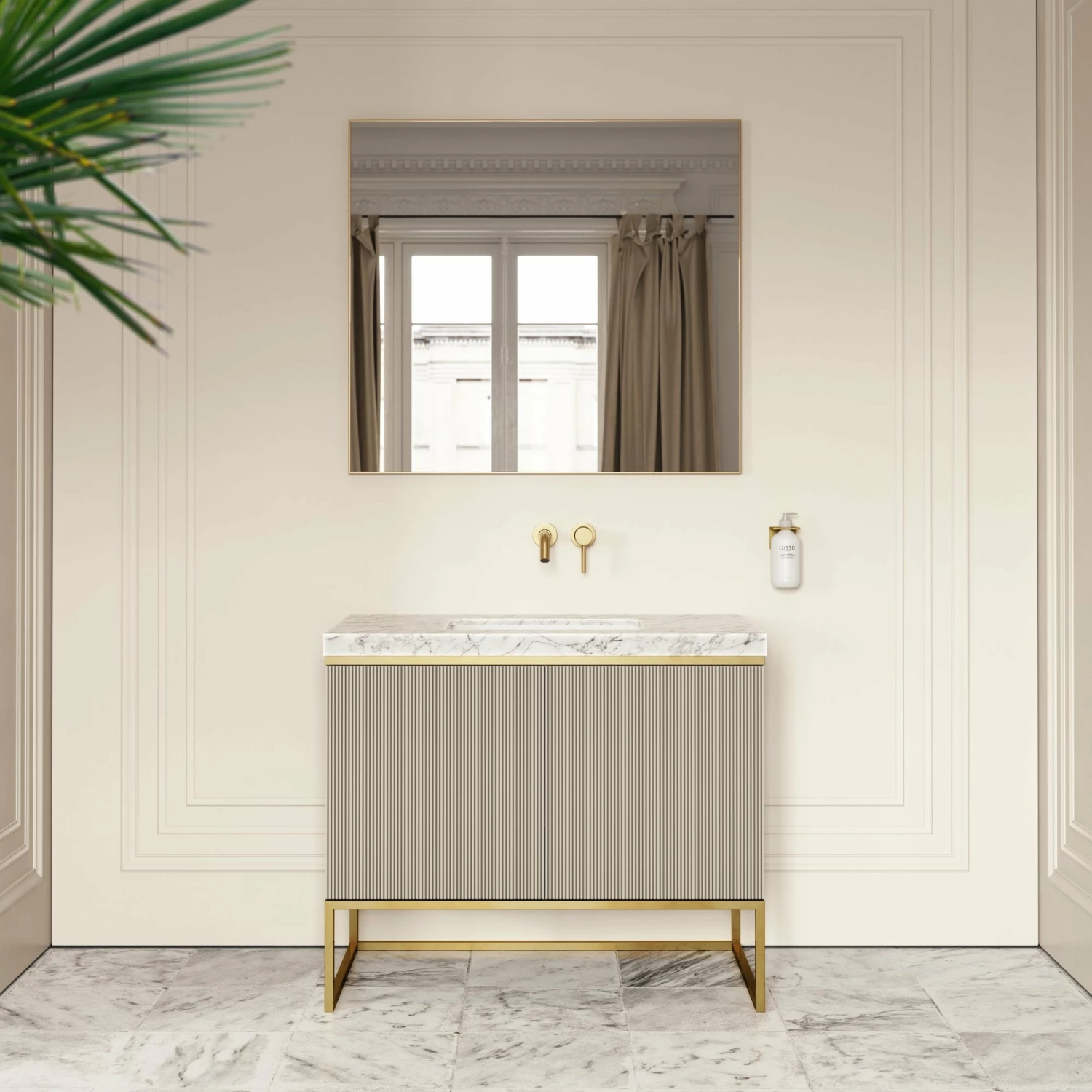 Defined by its strong geometrics, striking gold frame and contemporary fluting, the Couture Vanity Unit is a product of grandeur, and is heavily inspired by the architectural themes of some of Paris’ most luxury high-fashion houses.