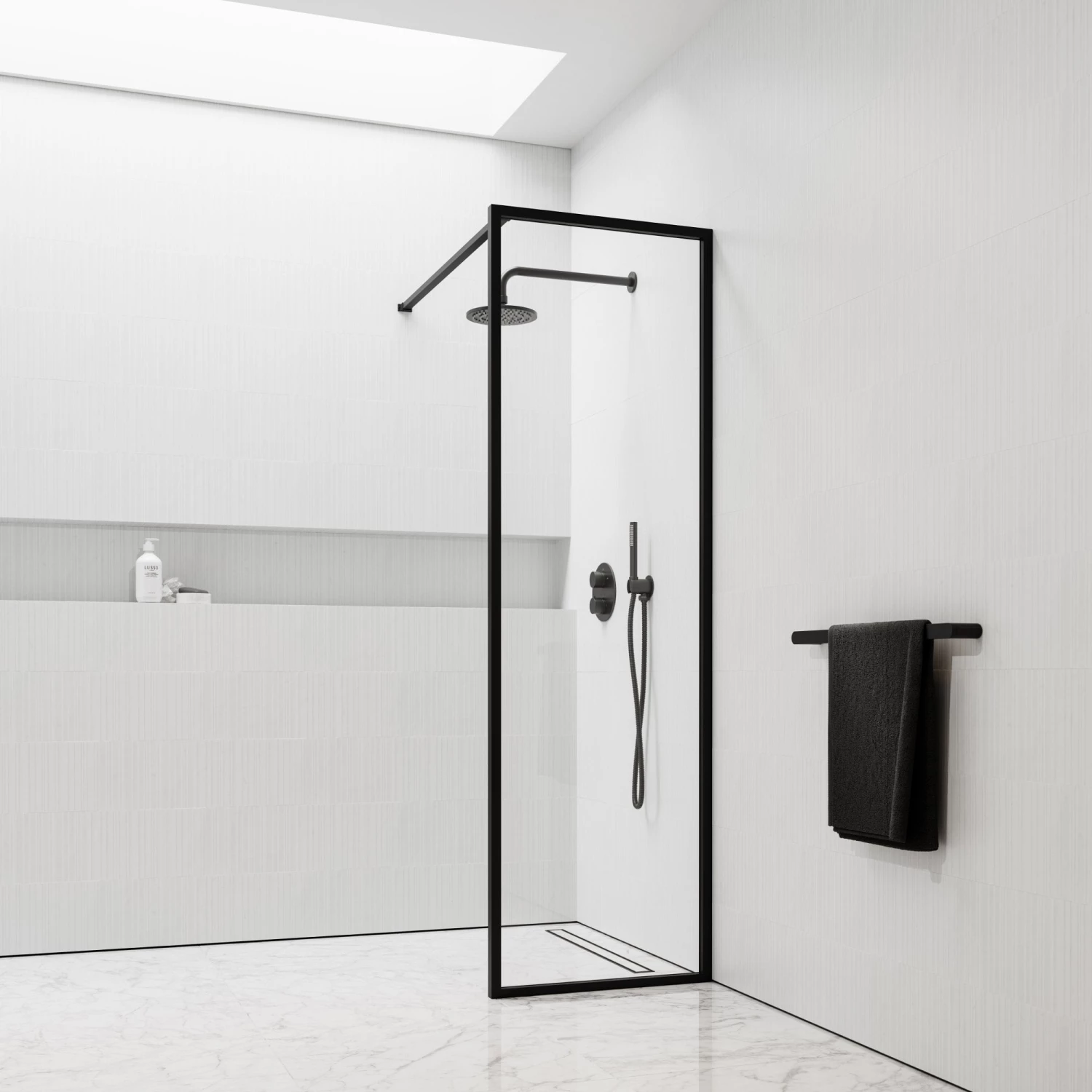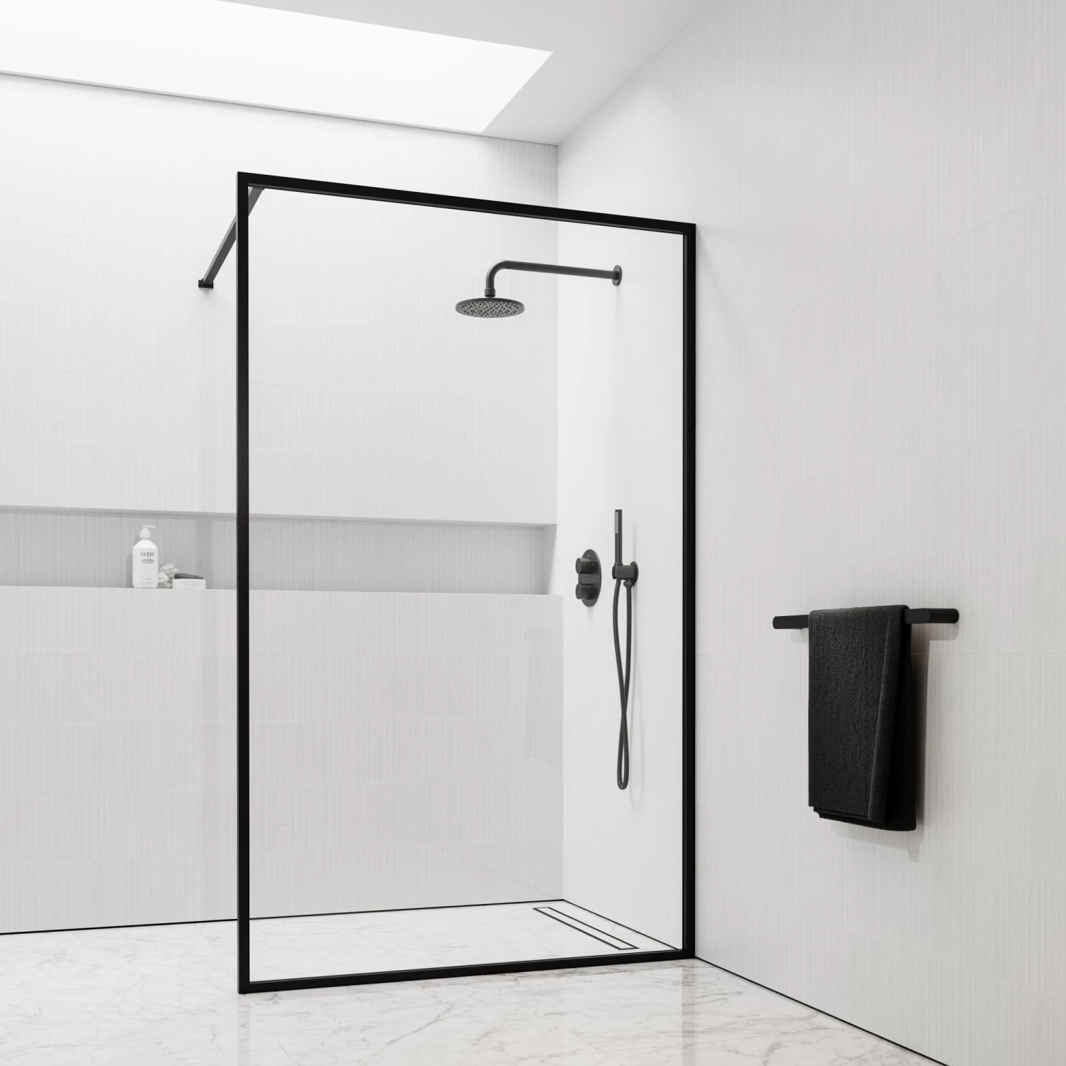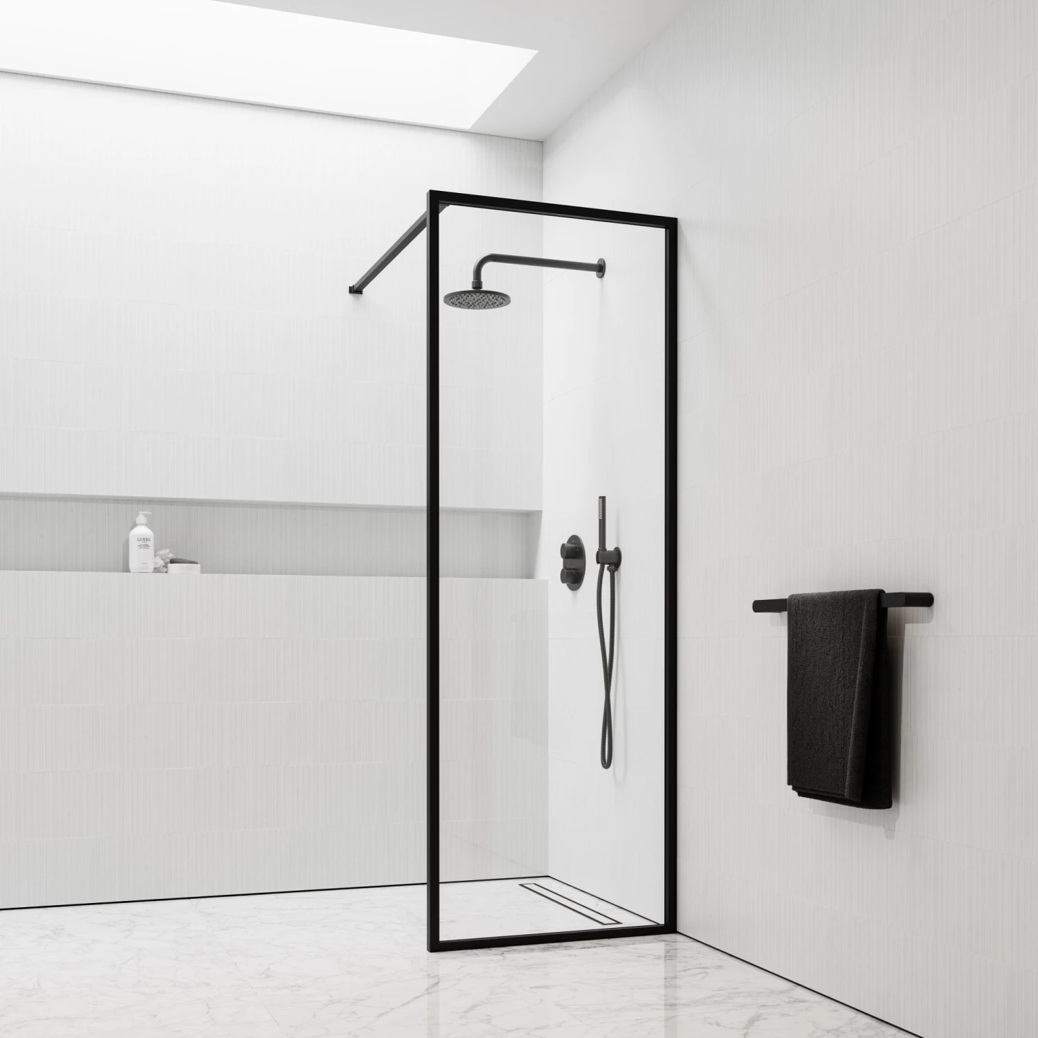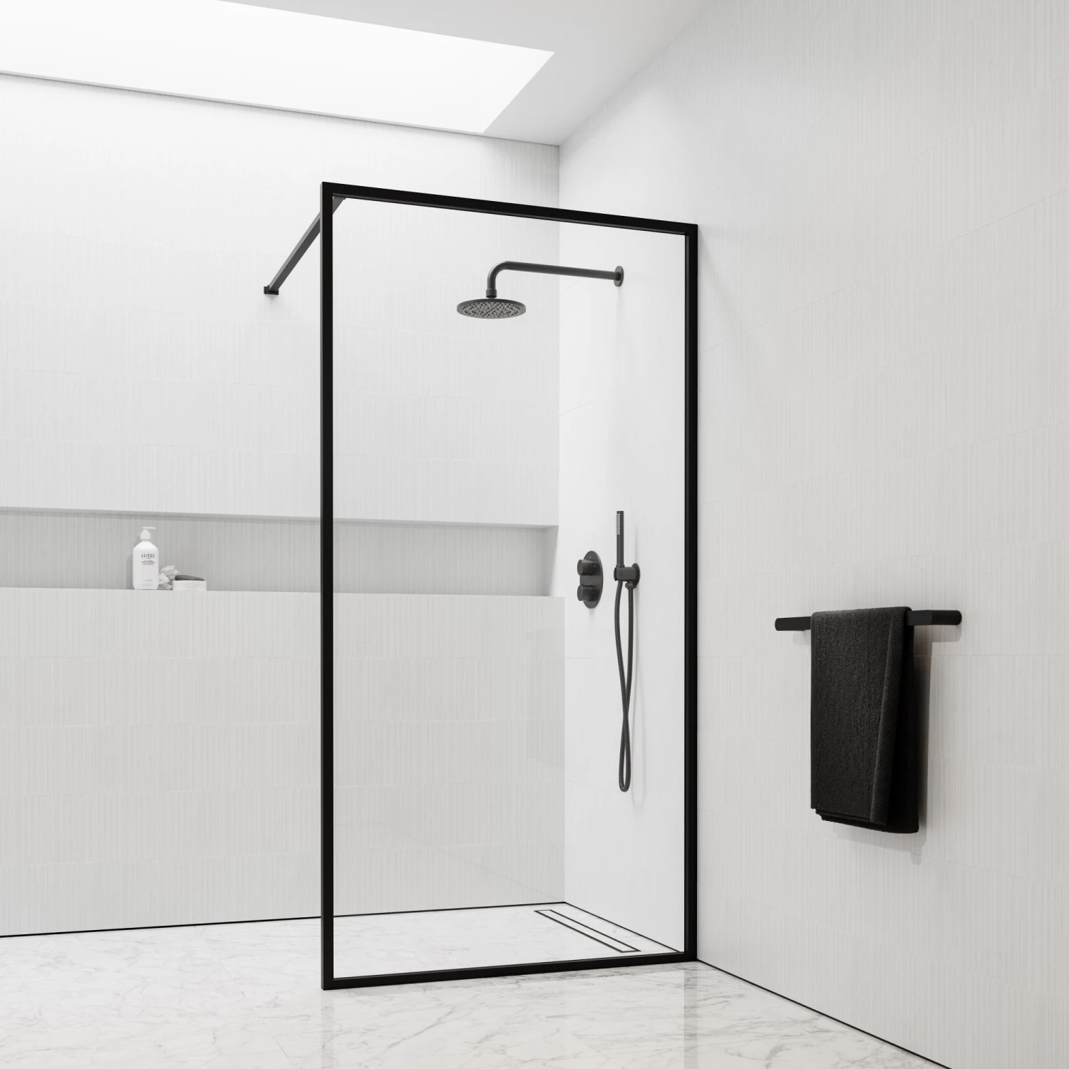 A shower screen is a practical necessity, but it can be a vital component of a minimalist design scheme rather than a discordant note. This Designo shower, featured in its matte black finish is available in a variety of sizes and makes a striking addition to any bathroom that features matte black taps and showers sets. This on trend matte black shower screen is the perfect way to complete your high end bathroom design. Complete with angular edging and a minimalist finish, this ultra-modern shower screen is the ideal choice for those who want to create a contemporary and simplistic aesthetic in the bathroom.