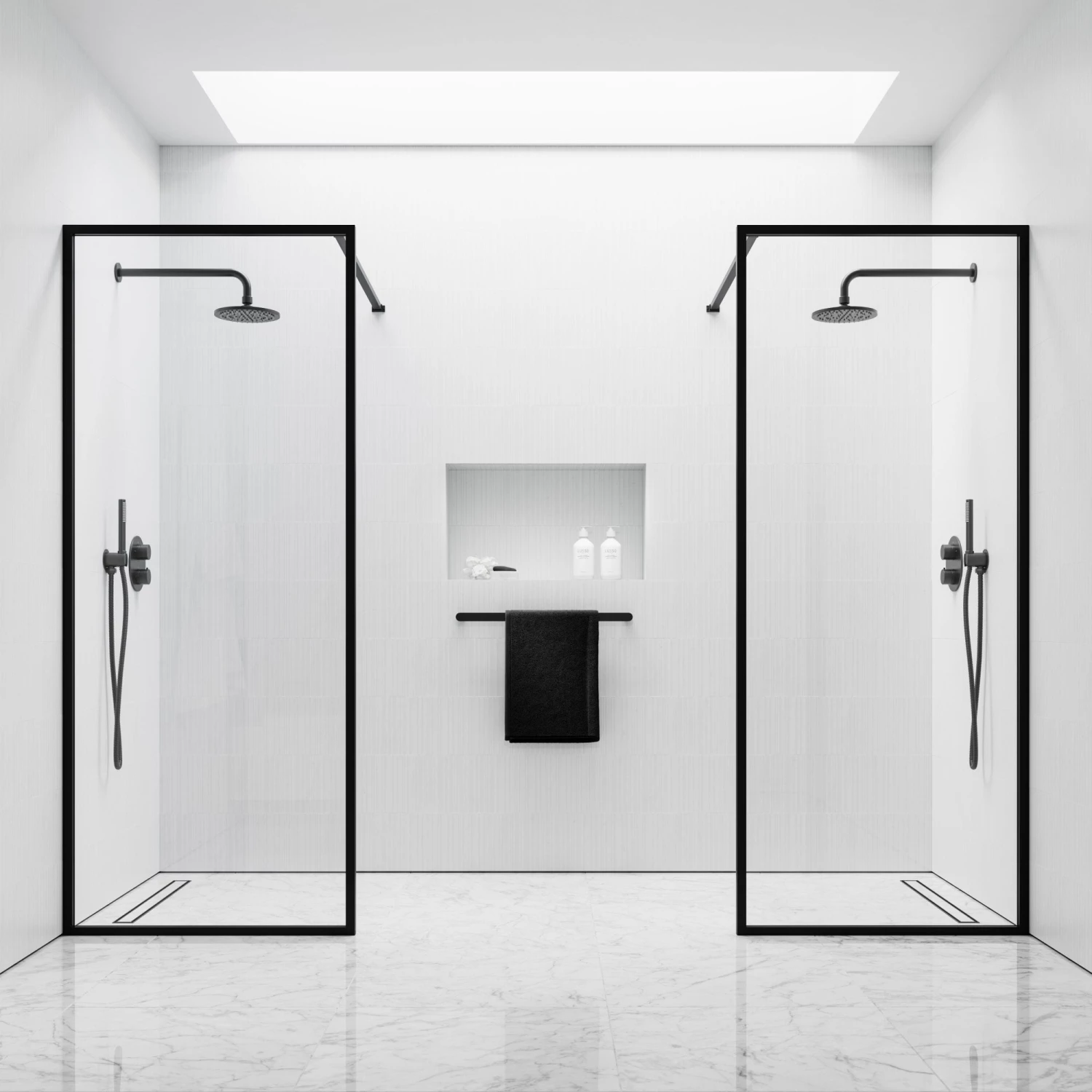 Our famous ten-year warranty applies to this stunning industrial style matte black shower screen, so you know that our luxurious designs are created with the same absolute commitment to quality as all Lusso stone bathroom accessories. If you require a matching shower set for this stunning minimalist shower screen, be sure to peruse our array of thermostatic showers, complete with overhead and handheld spouts and available in a choice of finishes.