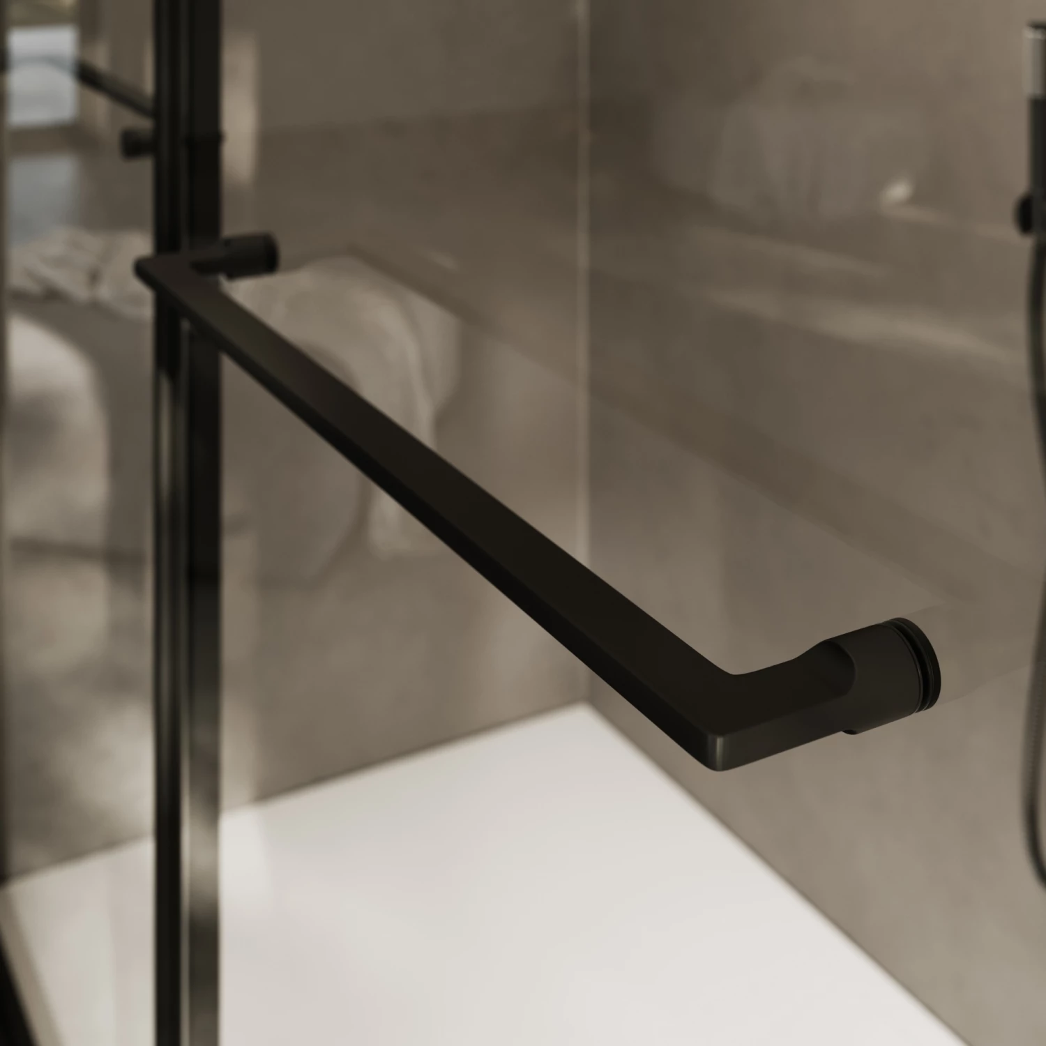 At 1950mm in height, the matte black shower screen provides a luxury space for a spa-like experience. The reversible design, offers versatility and ease, allowing you to save space with the option for left or right door positioning. Crafted with 8mm toughened glass, it features soft closing doors for effortless and quiet movement. As well as handles that can be used as towel bars.