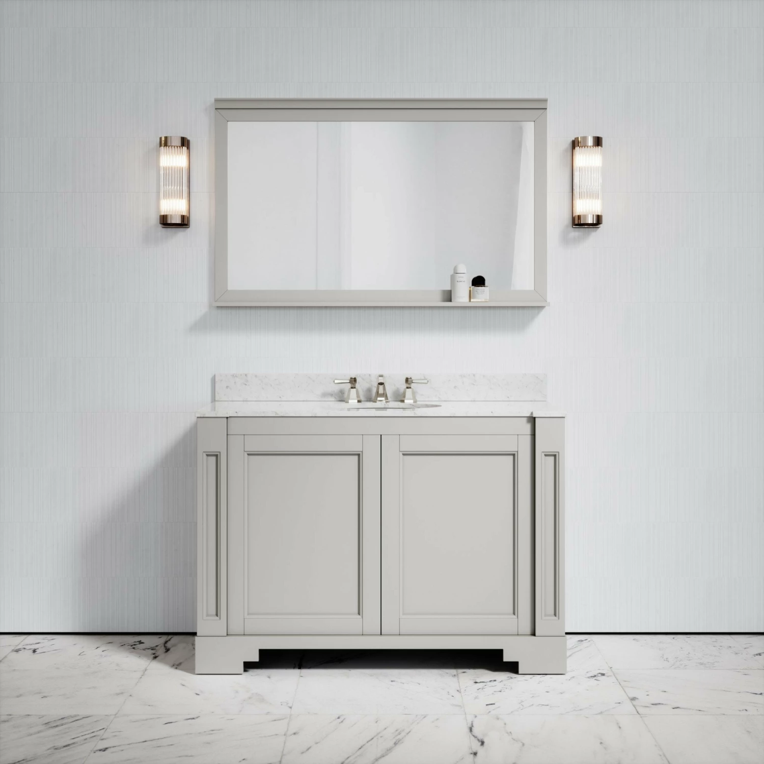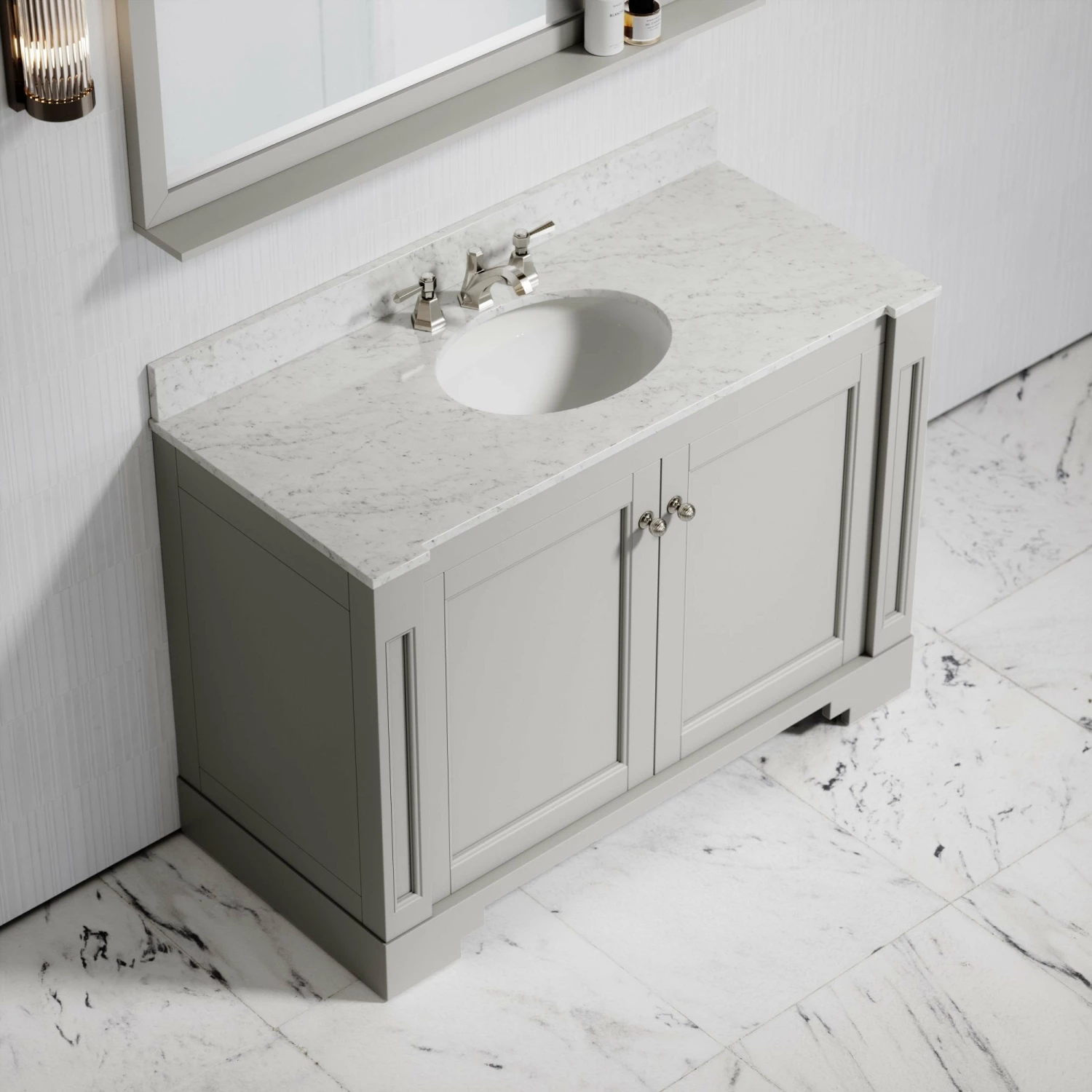 Crafted from marine grade plywood to ensure the highest of standards, the Eaton Vanity Unit has also been coated in a matte stone finish for unmatched excellence, as well as showcasing a beautiful Italian polished Carrara marble countertop, complete with a built-in oval basin.