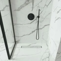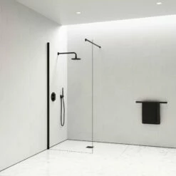 Our exposed thermostatic matte black shower with riser and bath spout is the perfect addition for a modern bathroom look. Paired with one of our stone baths or shower enclosures, this unique system is a must have for an on trend aesthetic. Featuring both an adjustable handset, bath spout and an overhead drencher, this innovative matte black shower is highly versatile too. Made with high quality components, including Vernet cartridge and thermostatic technology for a precision stable temperature. Our exposed matte black shower is made from commercial grade quality materials for a long lasting design.