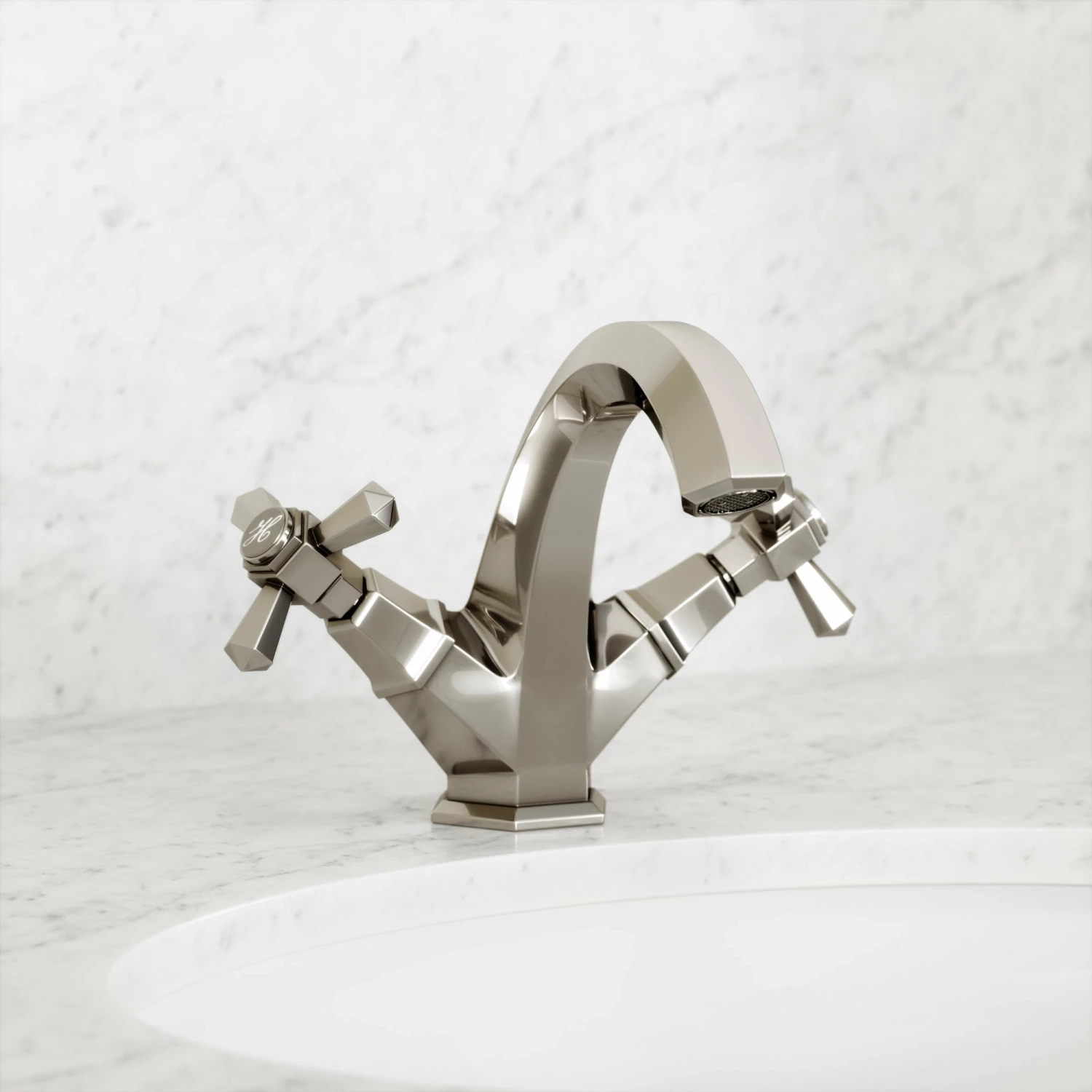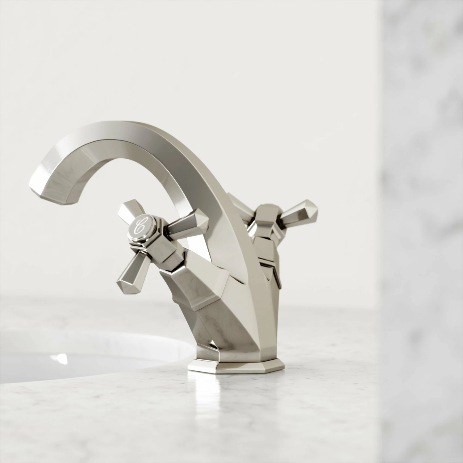Beautifully presented, the Eton bathroom mixer tap is a fitting homage to the brassware of the prominent Art Deco era, paying particular attention to the geometry and sunburst motifs that are synonymous with the art movement. The polished nickel taps are also hand-finished to create an impeccable sheen.