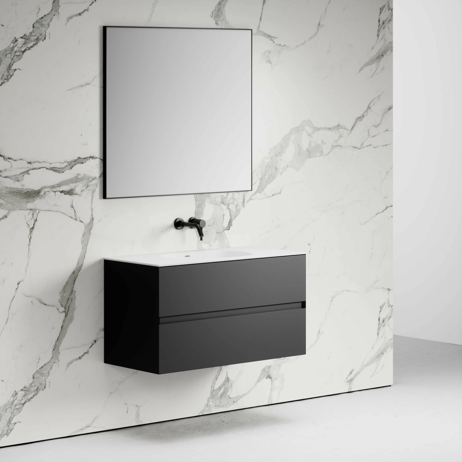 The Lusso Gobain Wall Hung Vanity Unit in striking matte black is contemporary luxury defined. With a strong, clean-lined silhouette, the Gobain wall hung vanity unit (with stone basin included) manages to achieve modern grandeur which instantly elevates your interior. Designed to our impeccably high standards, this statement piece is perfect for any space where an industrial aesthetic is key. Supplied with an integrated Lusso basin and soft-close drawer, you can choose seamless style that is complemented by other pieces from our luxurious bathroom collection.