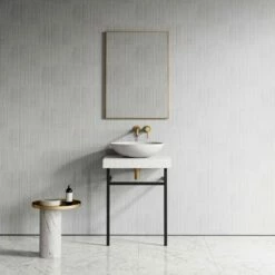 Elevate your everyday routine with the indulgent addition of this timeless vanity, mounted upon a sleek black steel frame. Incredibly charming, the Lomazzo freestanding vanity unit, offers a generously sized countertop ready for the basin of your choice.