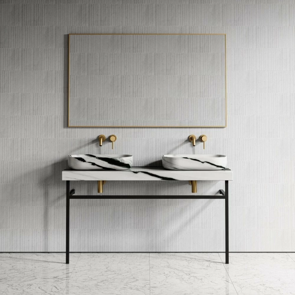 Double up with twin basins crafted from mesmerising marble boasting an impeccable satin-smooth, honed finish. Created for two in mind, the double vanity unit looks sensational beneath one of our oversized mirrors, reflecting scale and statement to any suite.