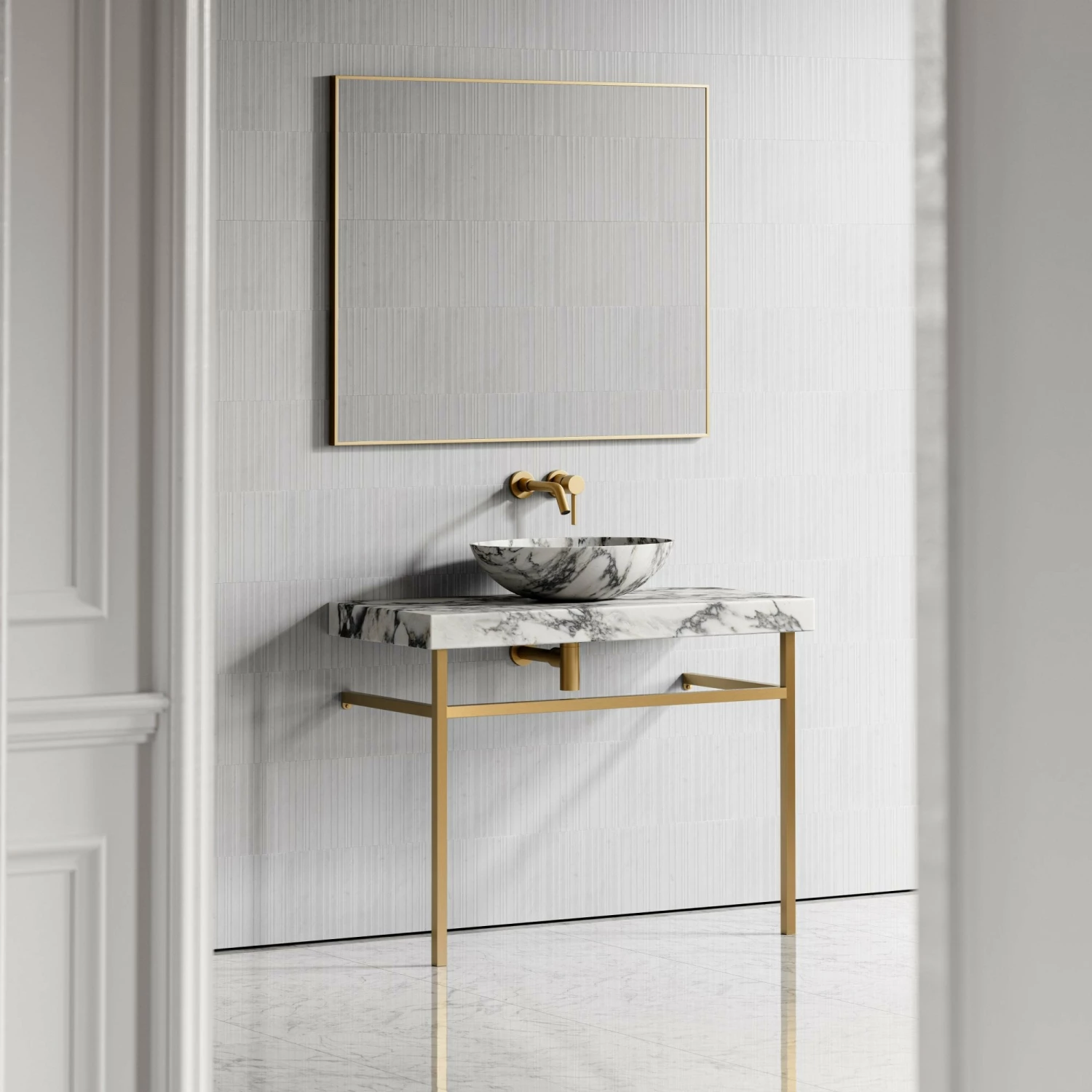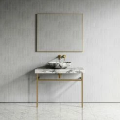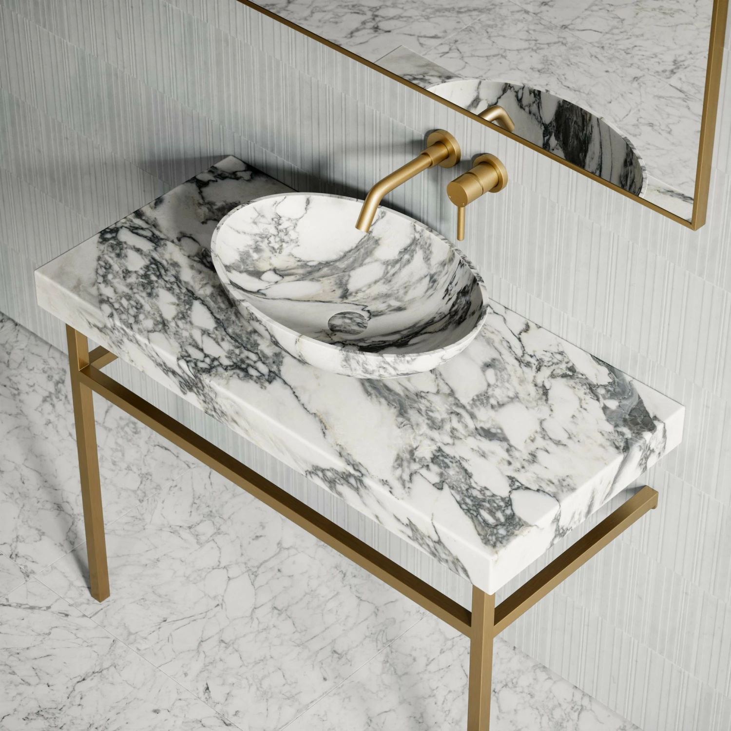 Transform your bathroom with the striking Lomazzo Countertop Vanity Unit. Beautifully defined by its Arabescato marble structure which creates a mesmerising space.