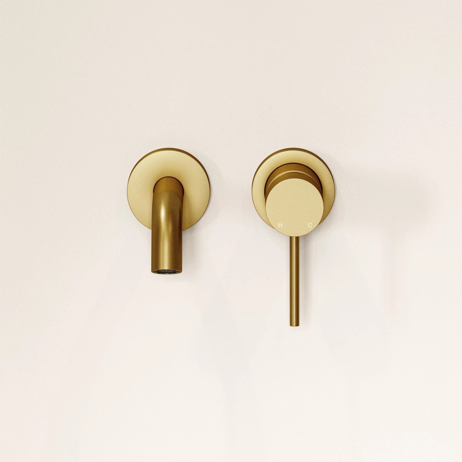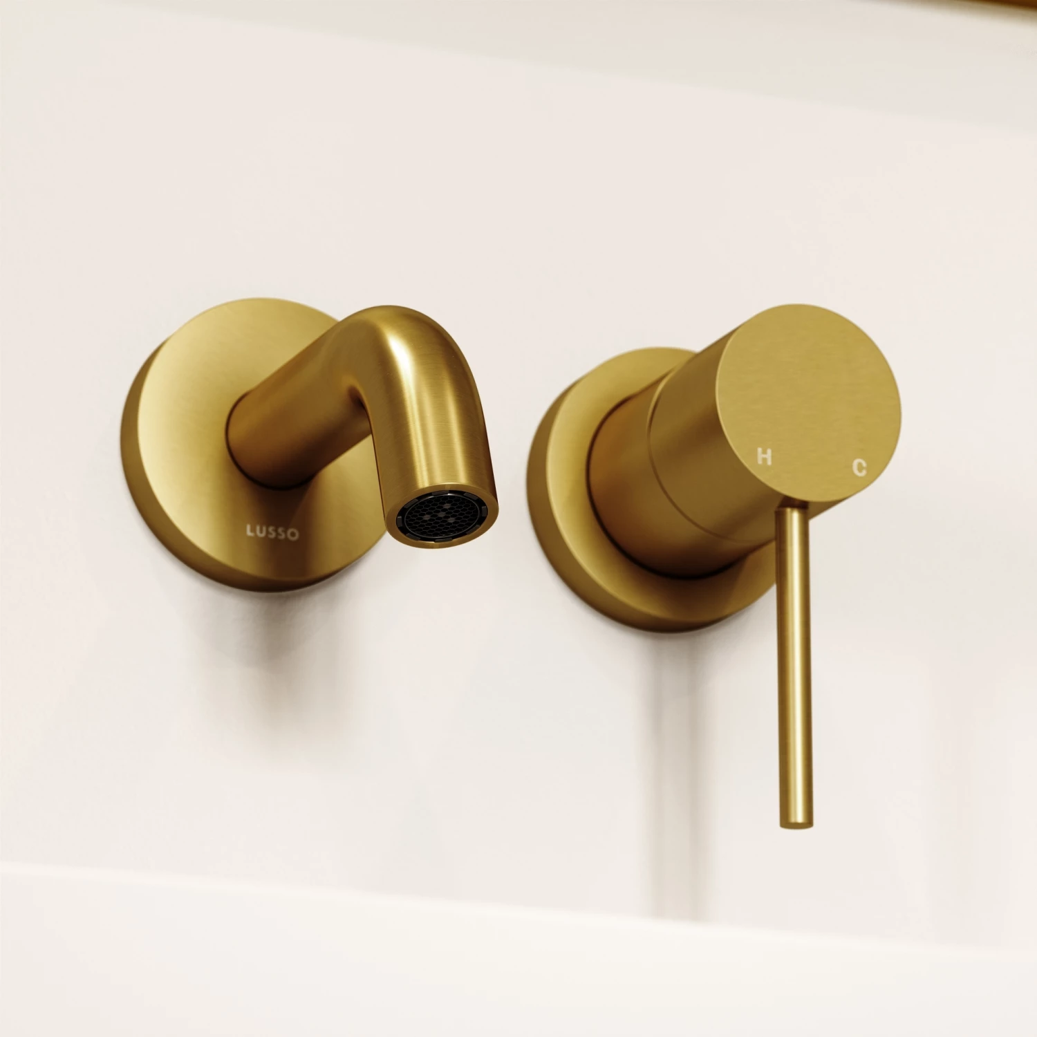 Be the first to review “Luxe Brushed Gold Short Projection Wall Mounted Basin Mixer Tap” Cancel reply