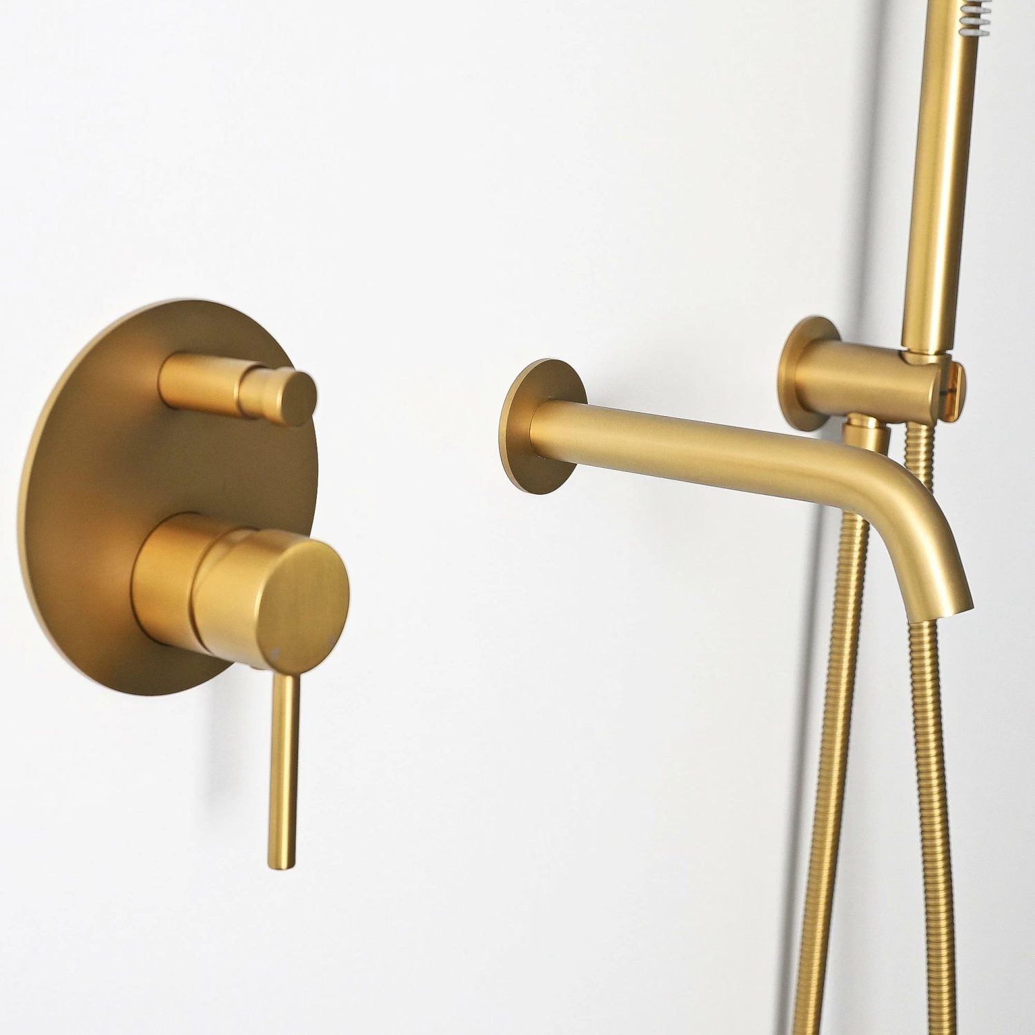 Easily pair the Lusso Wall Mounted Bath Shower Mixer Tap Brushed Gold with the rest of our brushed gold bathroom range for a unique and upmarket bathroom environment. Enjoy a regulated, continuous water flow with the convenience of a beautiful brushed gold wall-mounted system.