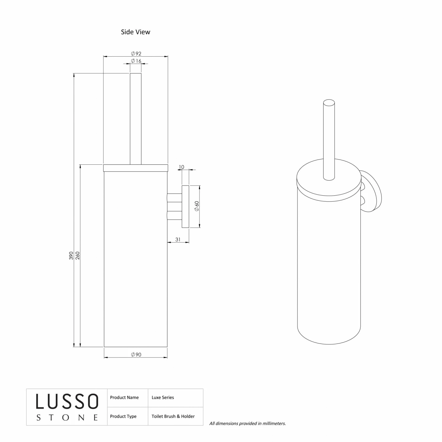 Our brushed stainless steel wall mounted toilet brush is just one piece in our luxurious brushed stainless steel bathroom accessory range. Designed to complement our striking stone baths and basins, these designs make it easier than ever to make a style statement in the home. Discover the full collection at Lusso today.