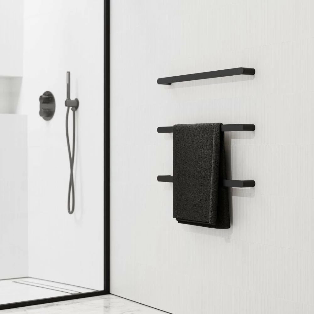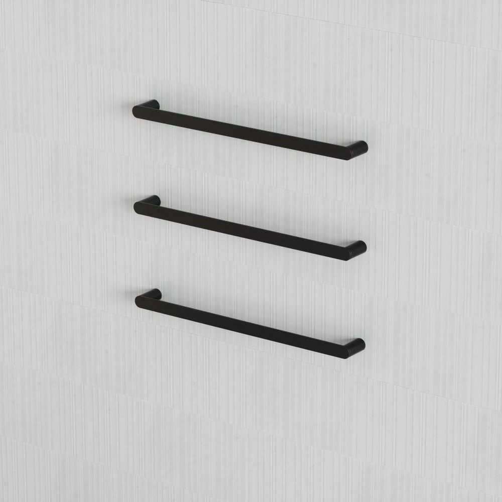 A singular componant matte black towel rail is 600mm and spacing between the three bars can be adjusted to fully customize and fit your space perfectly. It is the ideal choice for anyone looking for a practical addition to their bathroom that still exudes sophistication. Discover the full range at Lusso today.