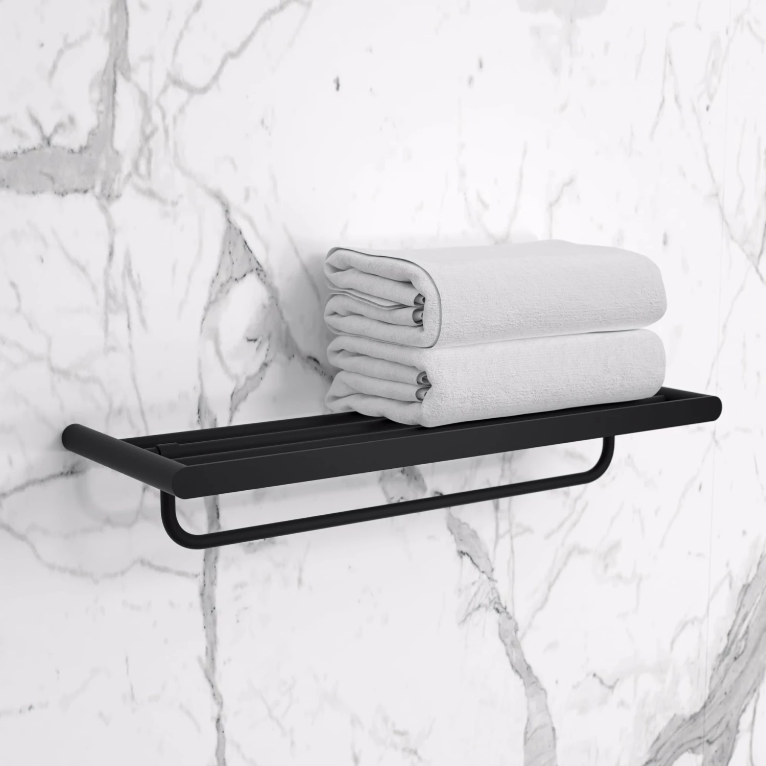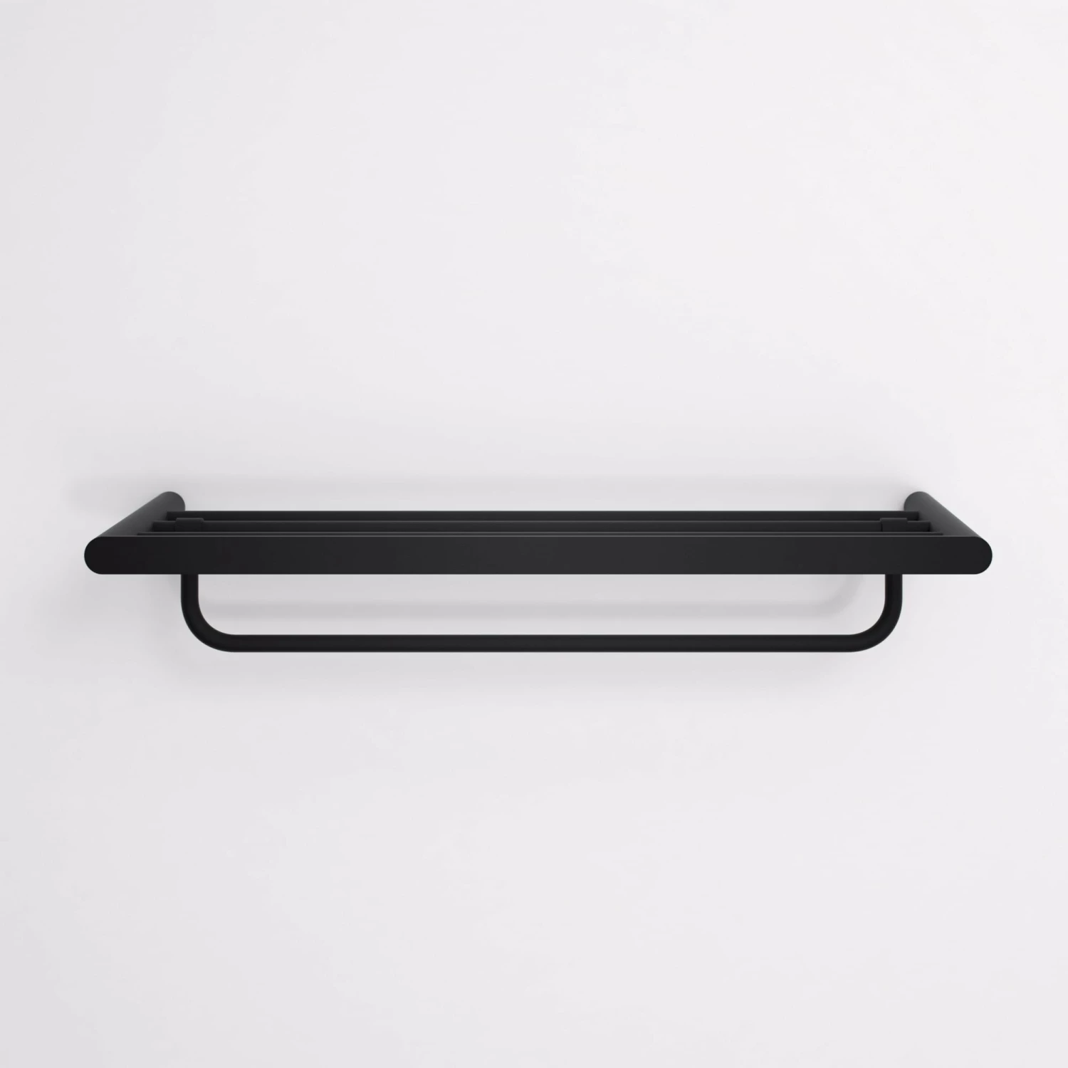 Contemporary elegance has never been so achievable thanks to our luxe matte black towel shelf with rail 600. Our team of artisan designers have created an array of products designed to elevate your bathroom. This matte black towel shelf with rail is the epitome of signature Lusso design, offering practical style to suit the modern home.