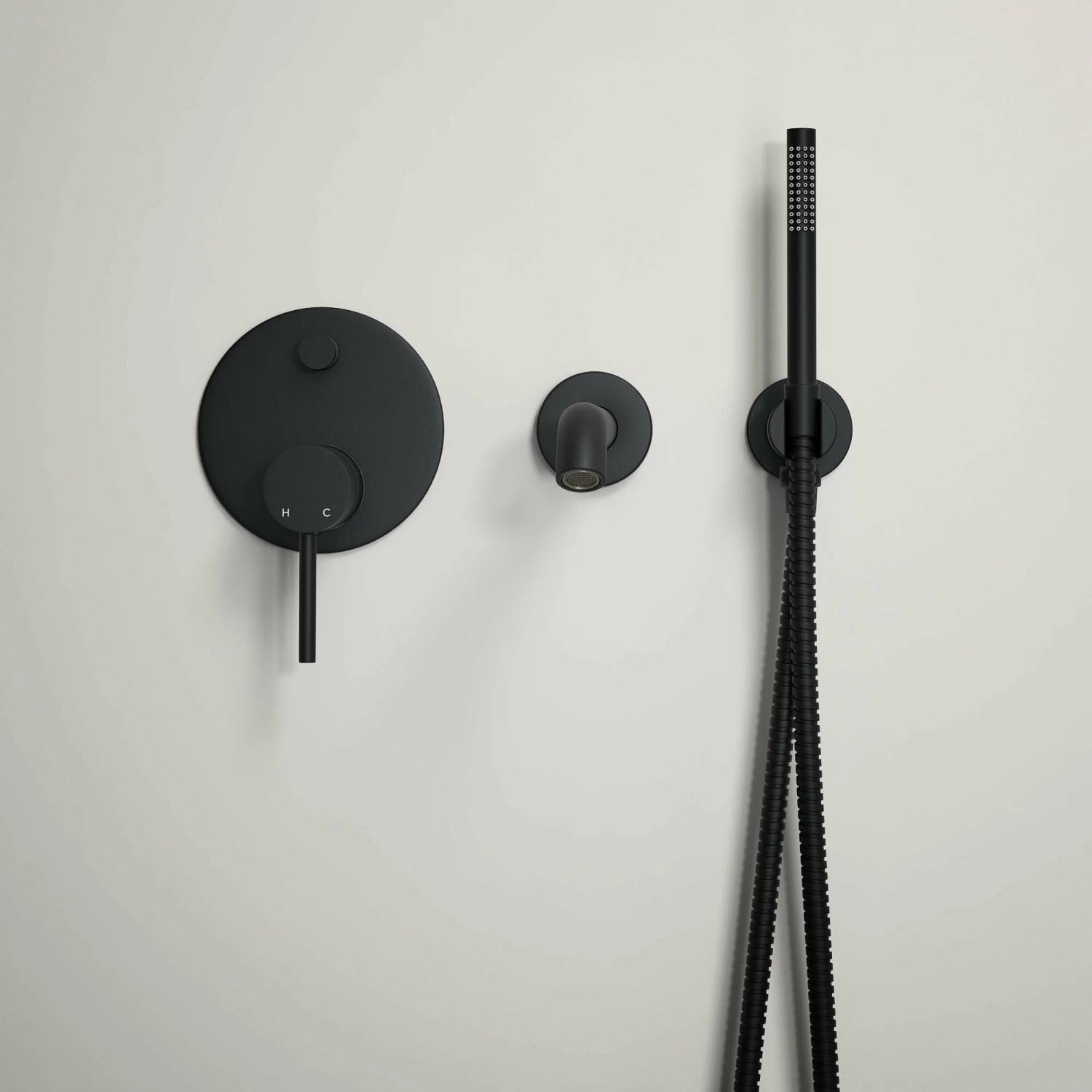 With a Neoperl aerator for a continuous flow, the Lusso Wall Mounted Bath Shower Mixer Tap Matte Black has a 15-year guarantee and features a Citec ceramic cartridge. It offers a spout projection of 190 mm and is made from commercial-grade components.