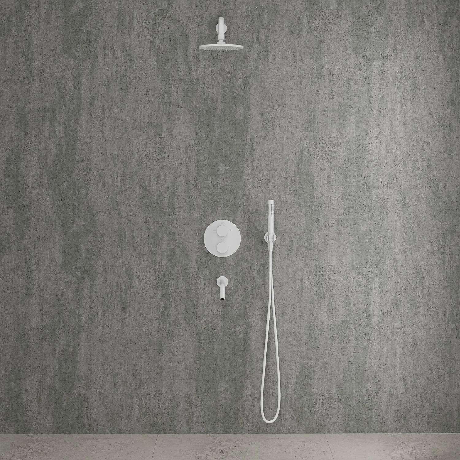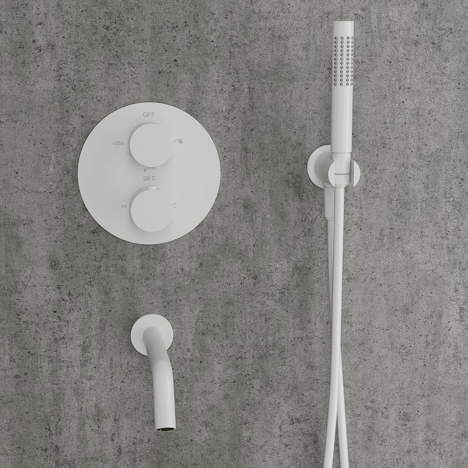 Add a touch of luxury to your new bathroom with this Lusso matte white 3-way thermostatic shower system with a bath filler. Manufactured to the highest standards, utilising high-quality components such as a Vernet cartridge to give you the precision stable temperature. Commercial grade quality with a huge 15-year guarantee. Team this up with our matching range of Luxe matte white products.