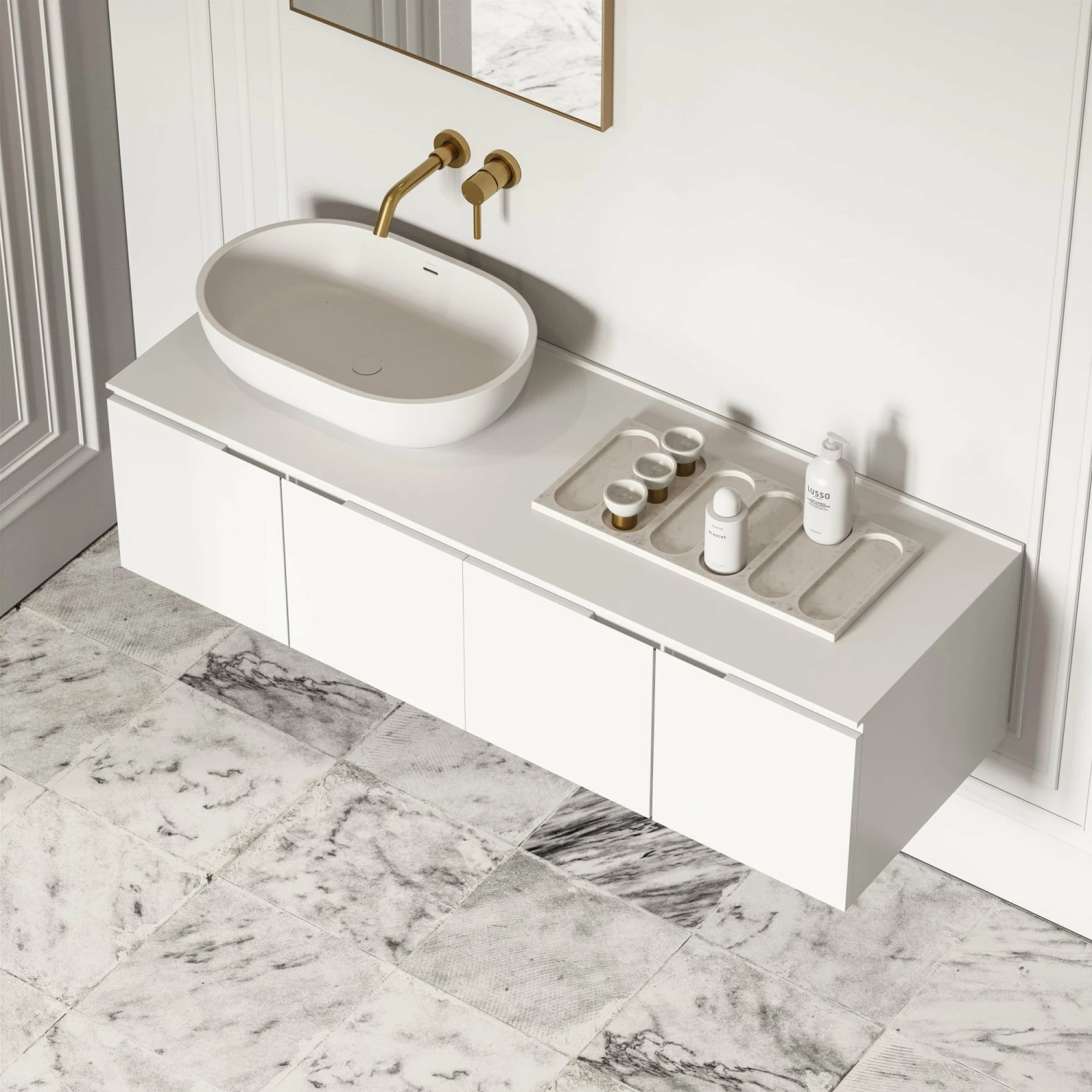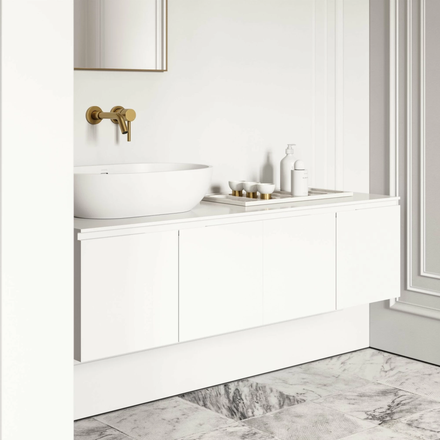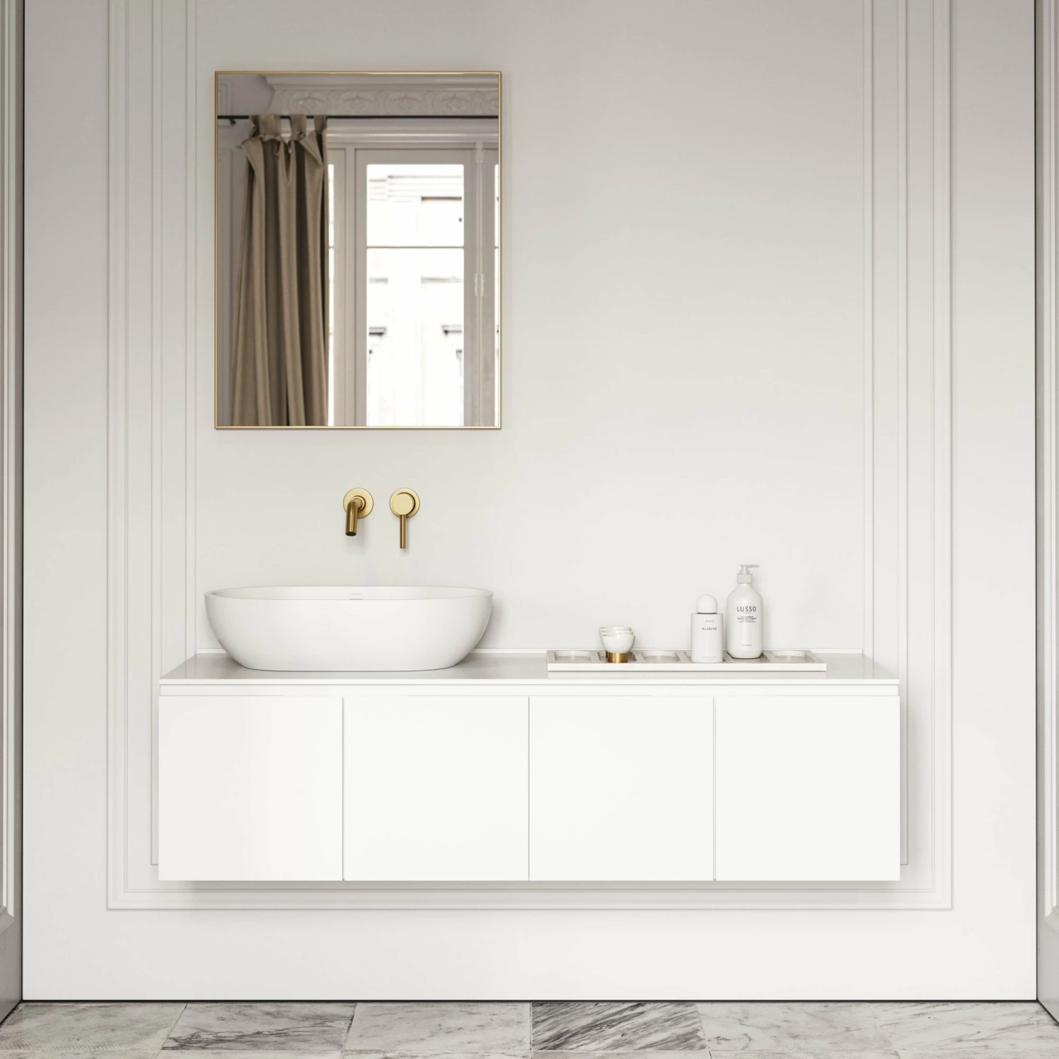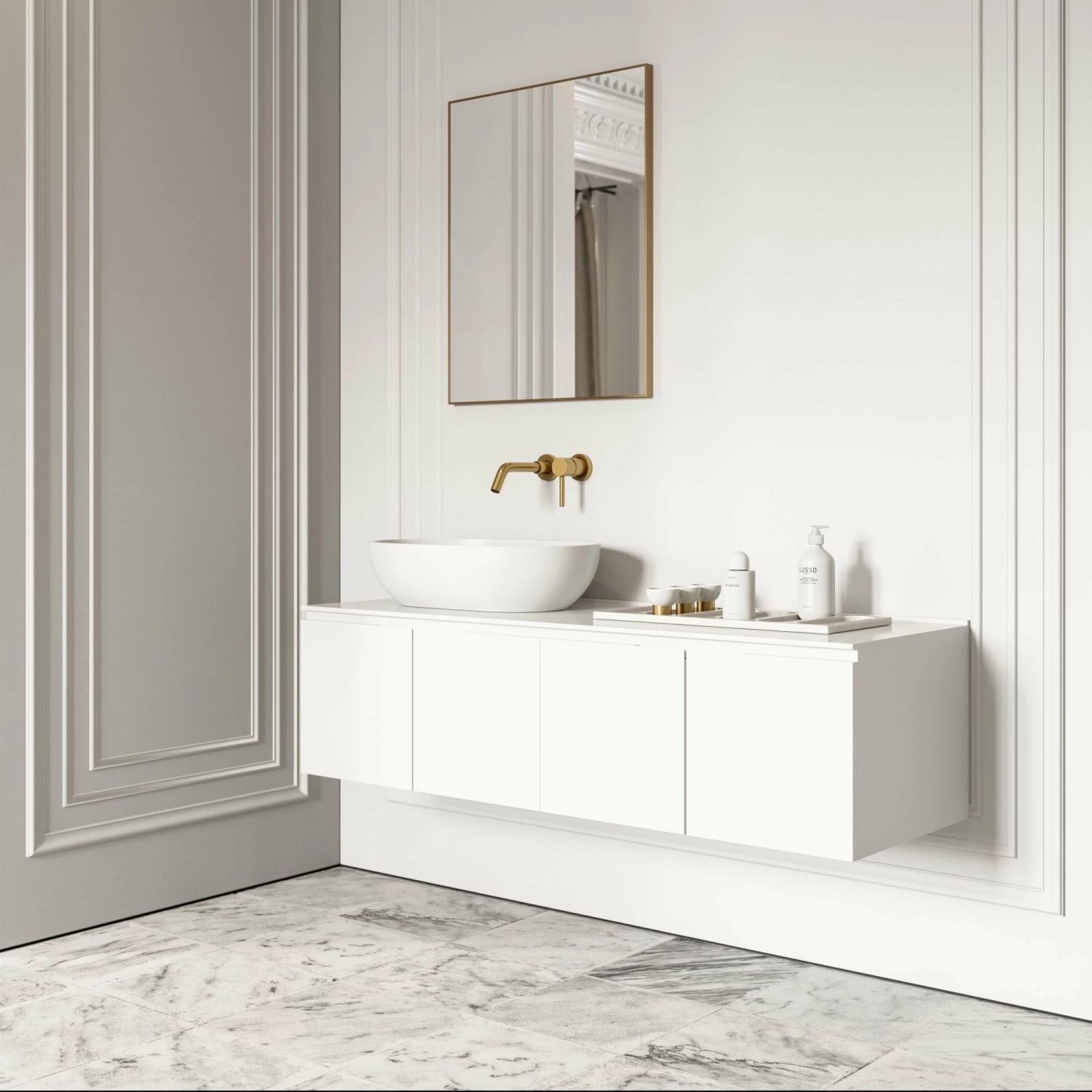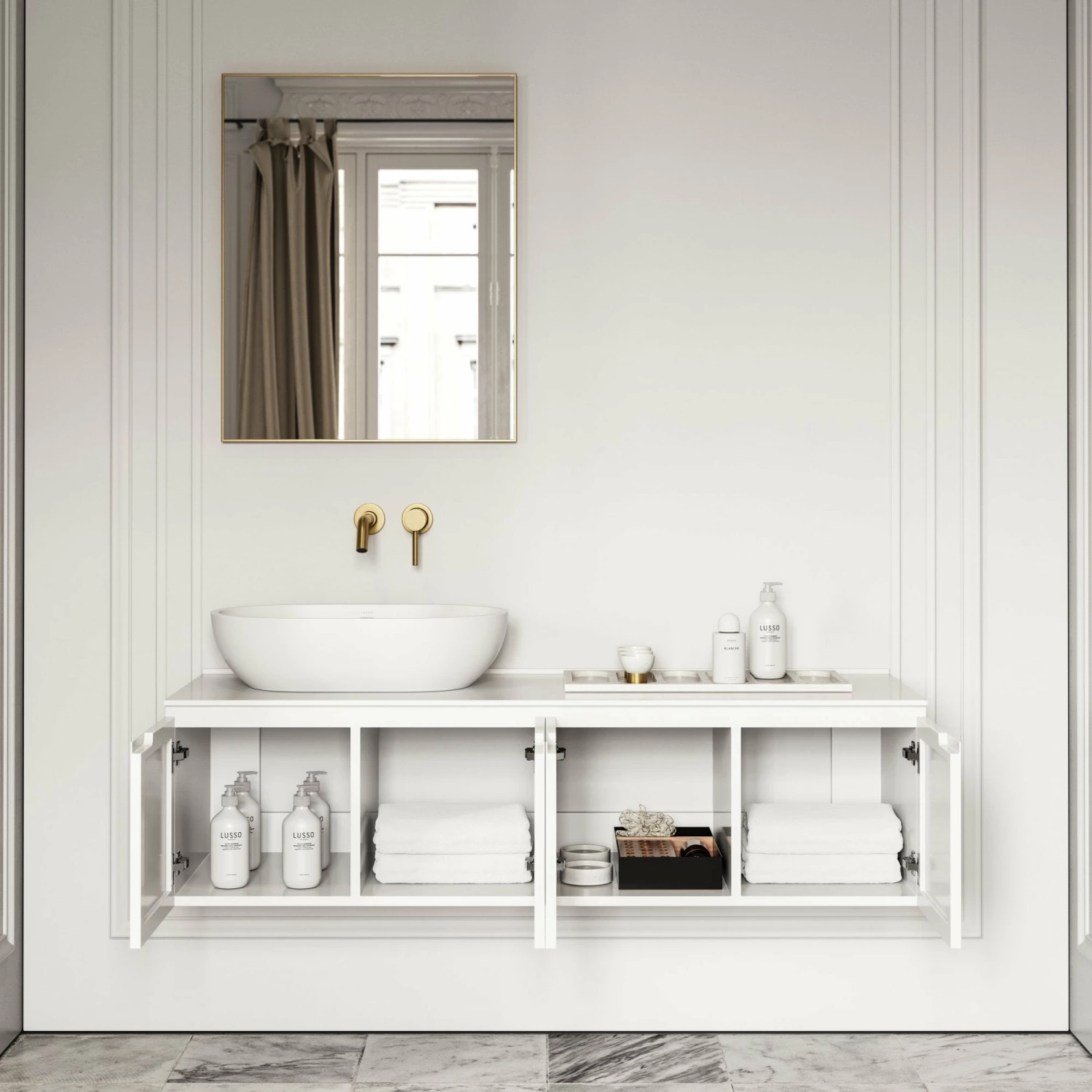 Finding storage that truly compliments your bathroom space can be a tricky business, but thankfully, here at Lusso, we’ve designed the perfect solution. The Luxor Matte White Vanity Storage Cabinet provides a sleek and aesthetically pleasing solution to your storage woes. This wall hung vanity unit securely houses the likes of towels and toiletries within generously proportioned storage cupboards, and you’re even able to complete its luxurious finish with one of our stunning stone resin basins.