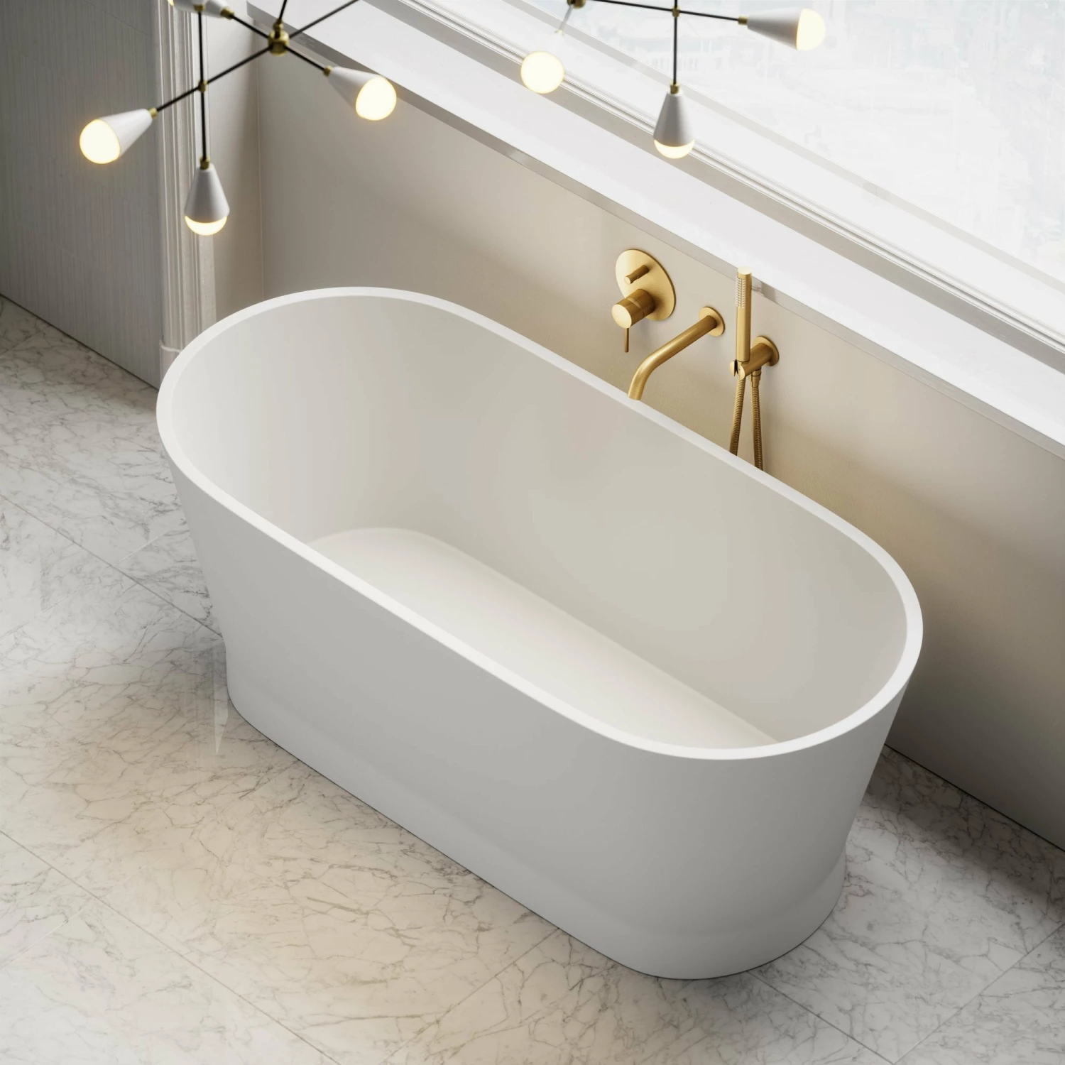 The Marlborough is a stunning example of minimalist elegance. Perfect for those looking for decadent bathing, this luxury bath embodies timeless design by blending classic elements with contemporary styling. Designed in Britain and hand-finished to create a beautifully bespoke feel, the Marlborough instantly elevates your living spaces, offering unrivaled excellence in quality and choice. A palatial living experience is on hand with the Marlborough freestanding bath, styled best with our opulent gold taps and bathroom accessories.