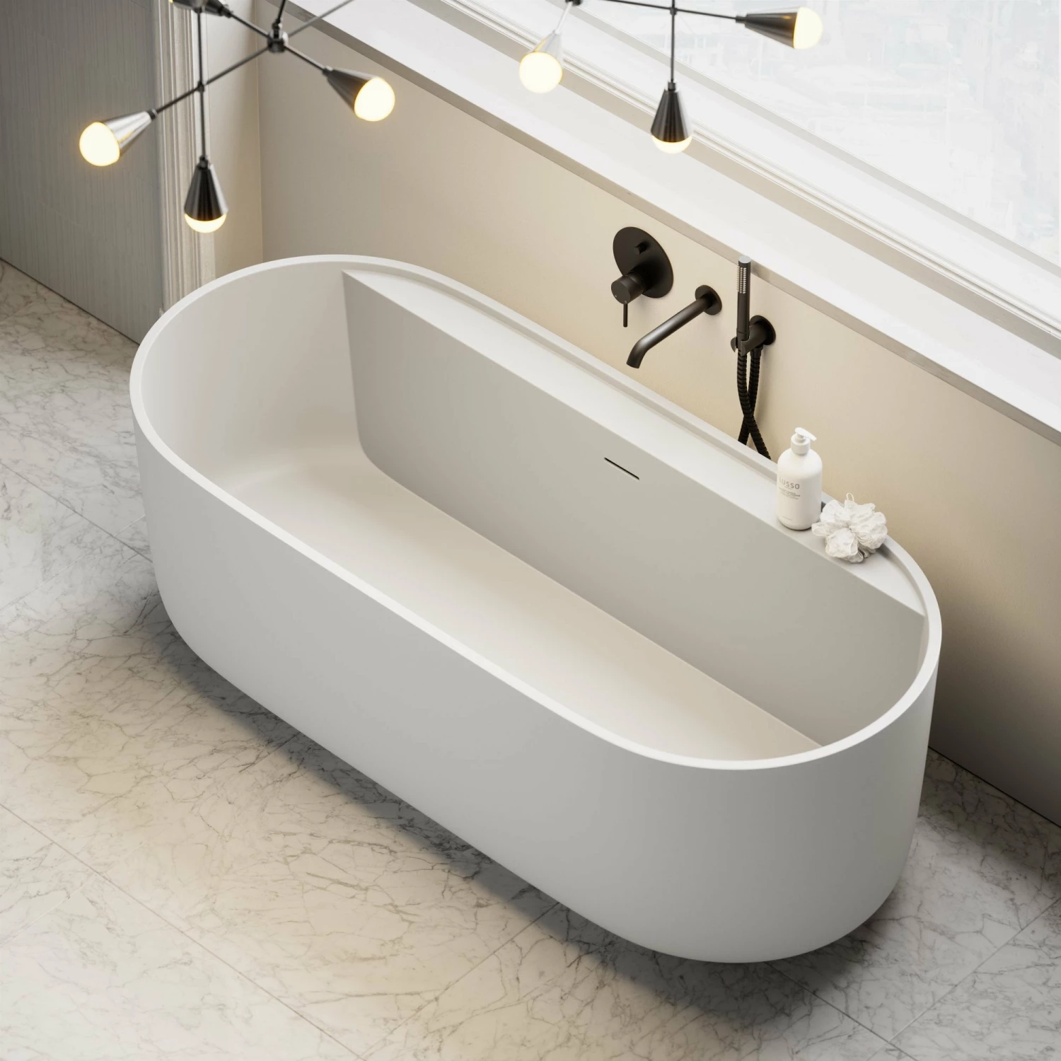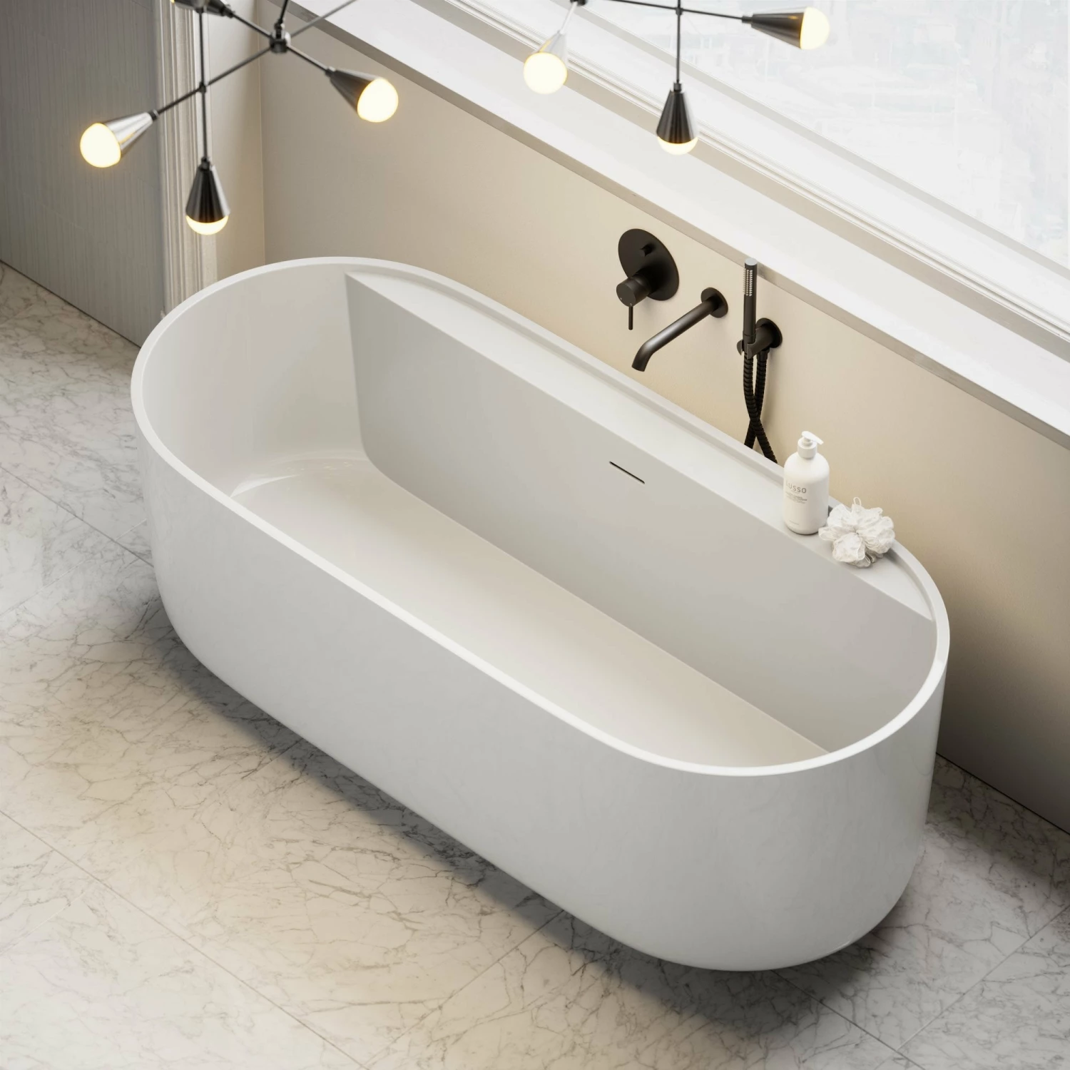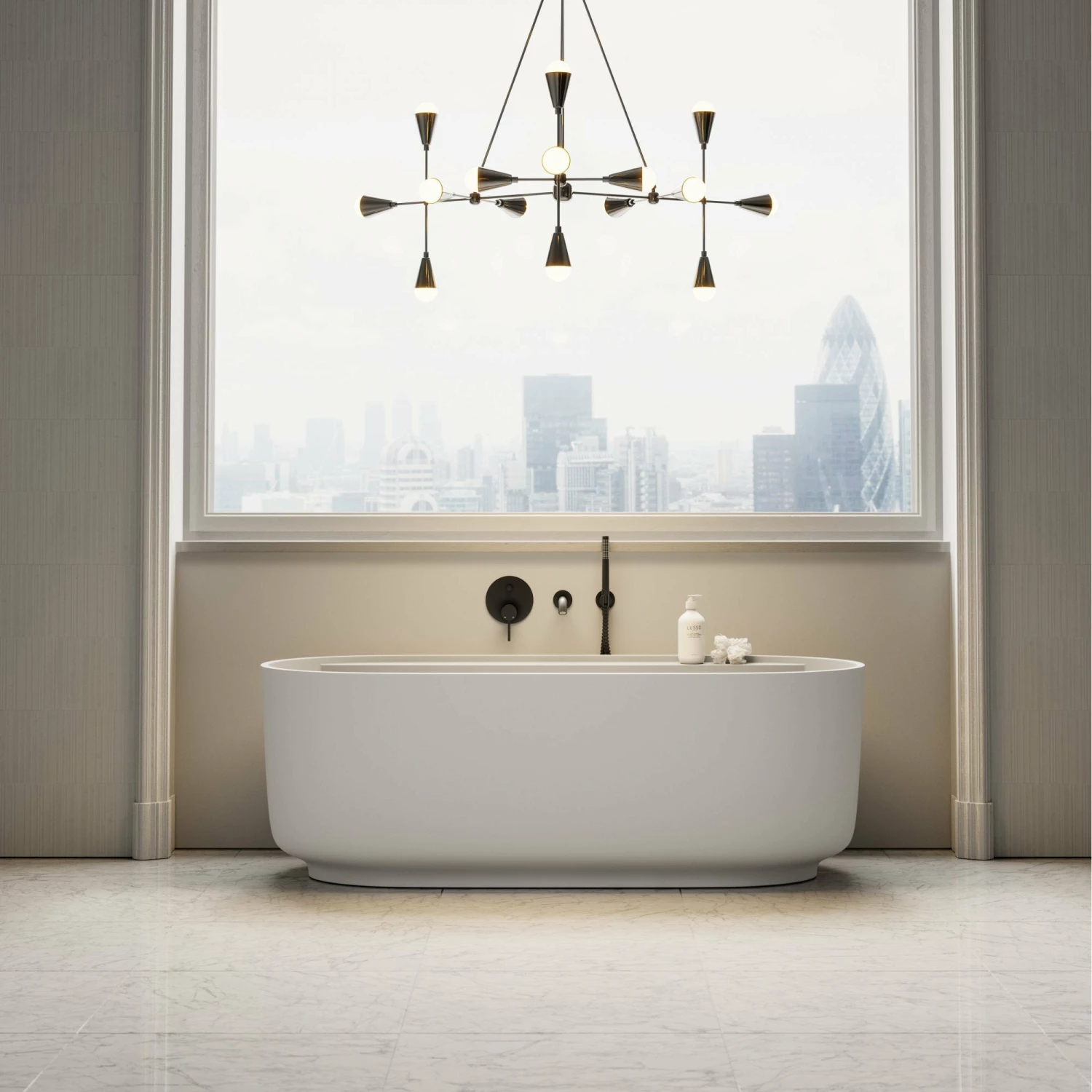 The Mastello Freestanding Stone Bath brings the relaxation of a spa to the space of your own home. With a deep structure available in both Lusso polished stone resin or matte, the Mastello captures relaxation at its finest, featuring a built-in panel to host whatever you may need during your tranquil home escape. Upgrade your modern interior with the Mastello freestanding bath and accompany with our selection of matte black taps for timeless, minimalistic decor.