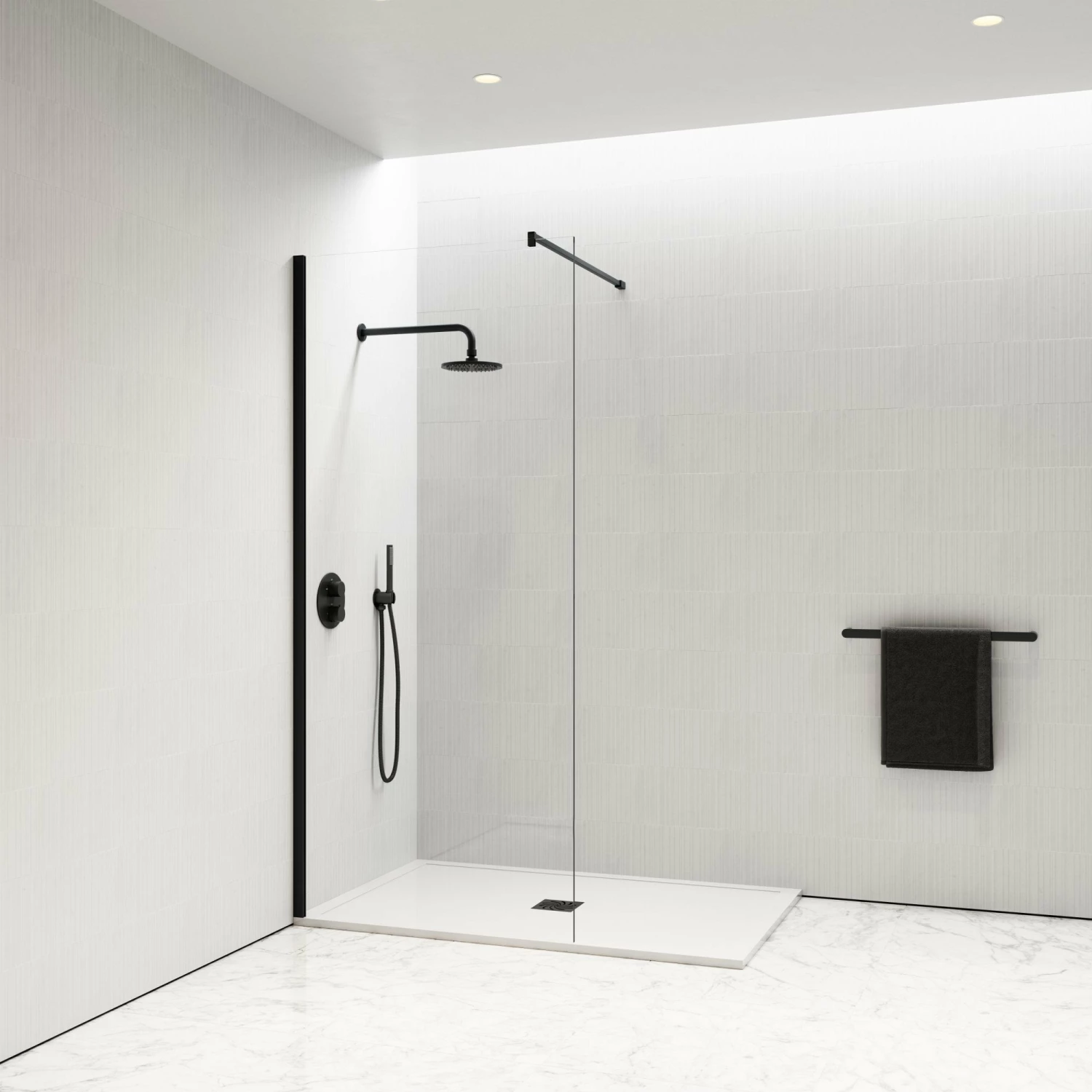 Finish off your luxury bathroom with the Modular Matte Black Shower Screen Kit. In our modern matte black colourway, the Modular shower screen is perfect for those with a taste for contemporary chic and can be beautifully styled with our other matte black products such as taps, showers, and black baths. The screen, with toughened clear glass, comes with all the fixings needed for installation such as a wall fixing post and adjustable support bar which can be cut to size.