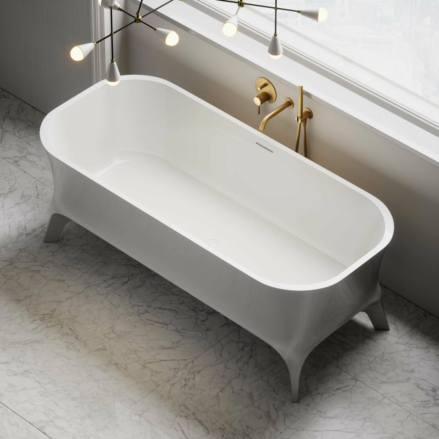 The Momo freestanding bath is a stunning juxtaposition of sharp, modern lines and classic design. The claw foot detail instantly elevates your living space, merging high-quality comfort with a beautifully decadent design. The Momo is the perfect addition to any dramatic interior, ideally complemented by other pieces in the collection, whether that be our brushed gold taps or bathroom accessories. This signature Lusso design is inspired by vintage elements, and crafted in a truly contemporary way.