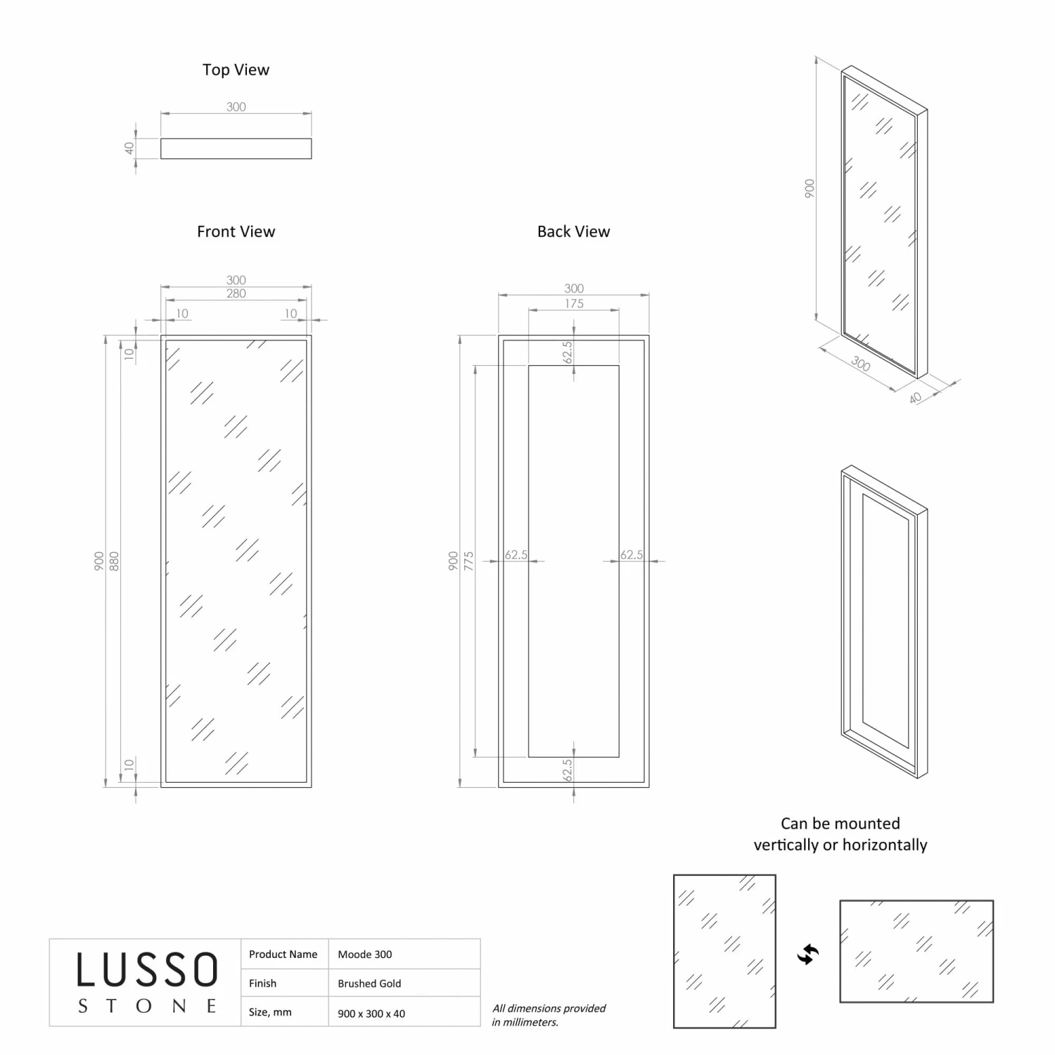 Simple yet striking, the Lusso Moode mirror in brushed gold adds an opulent feel to any interior. As one of our signature finishes, brushed gold elevates any bathroom with its warm hue and inviting tone. This slimline mirror perfectly complements our luxurious range of brushed gold bathroom accessories, allowing you to create a space that redefines contemporary luxury and elegance.