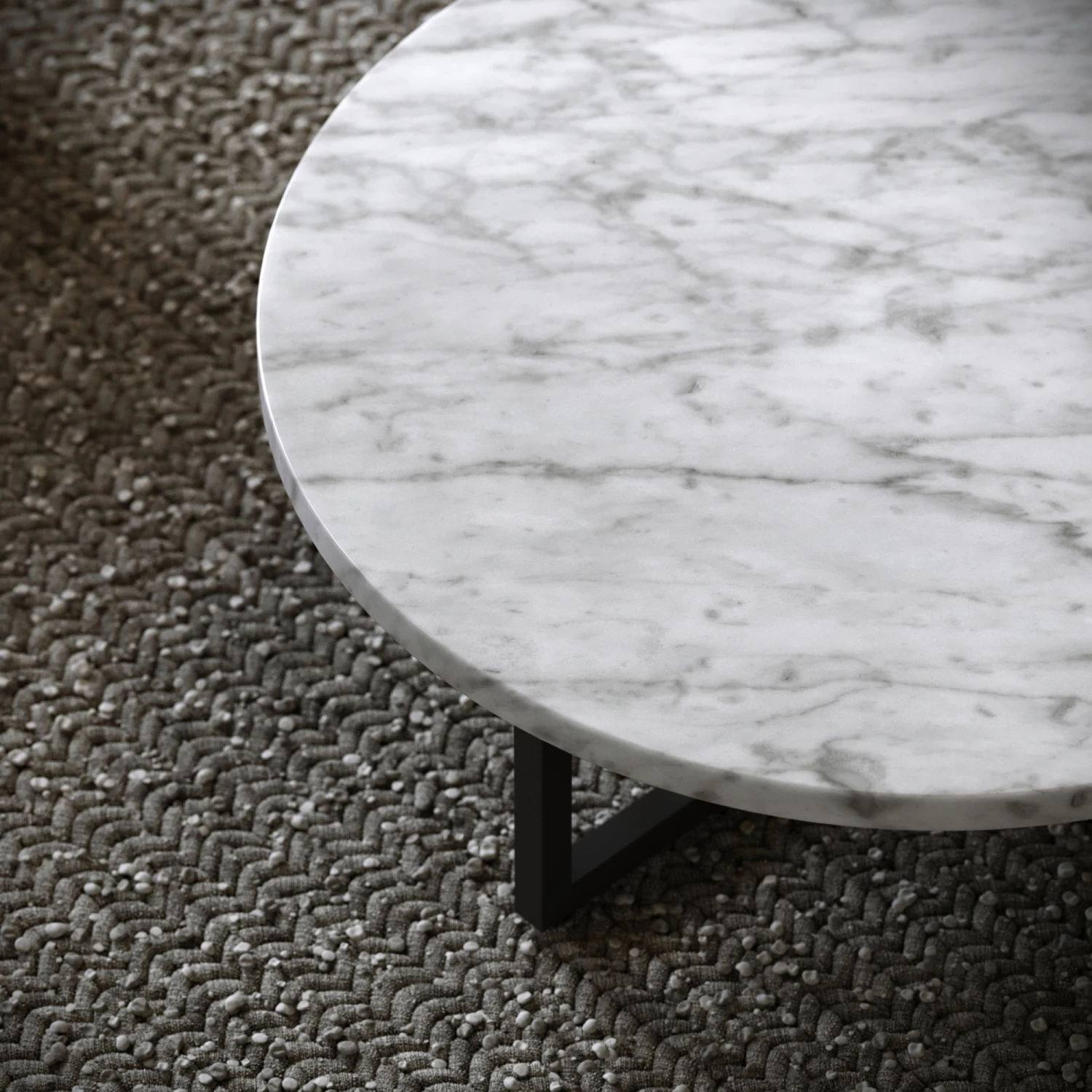 Model: Nazzano Carrara Marble Round Coffee Table with Black Legs
