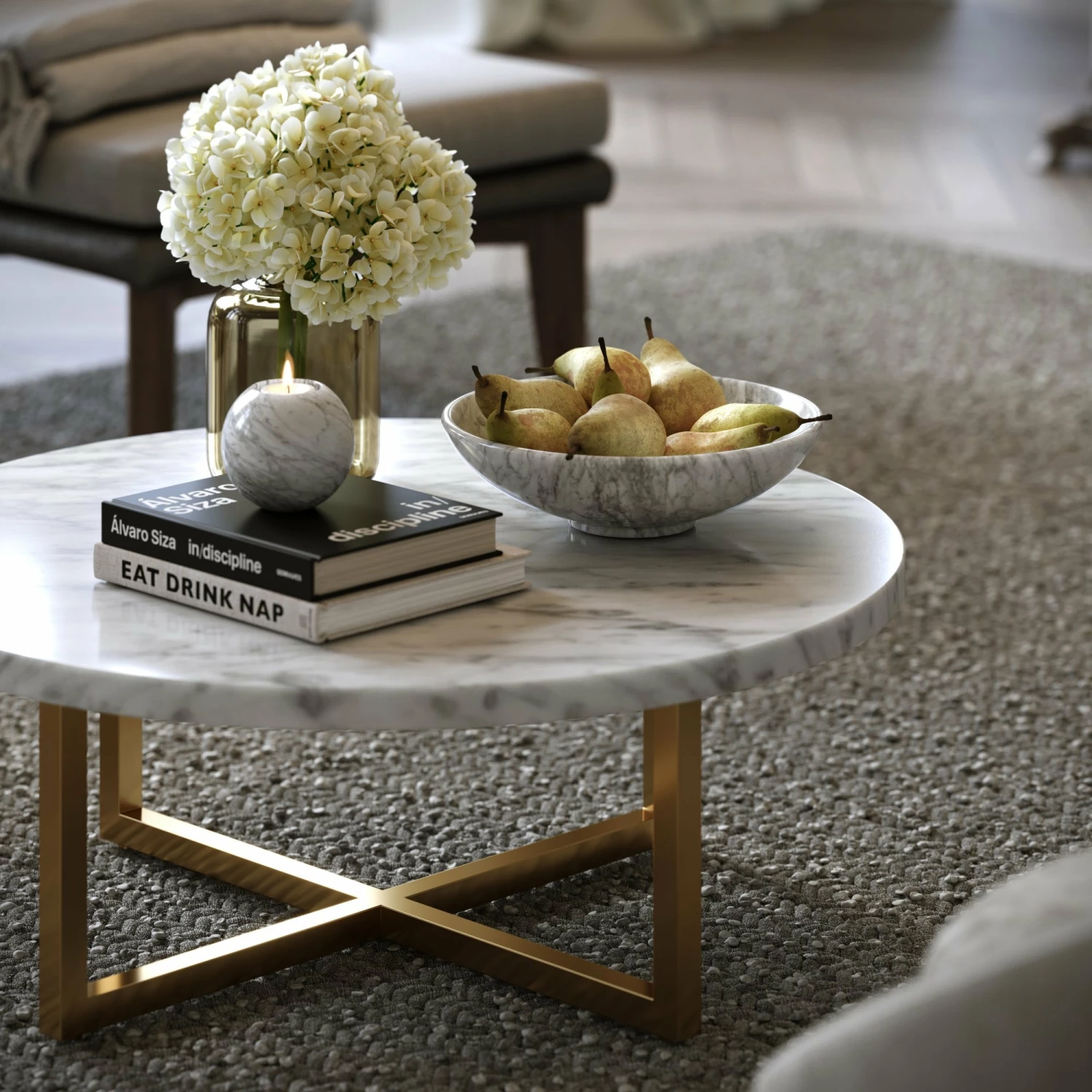 Model: Nazzano Carrara Marble Round Coffee Table