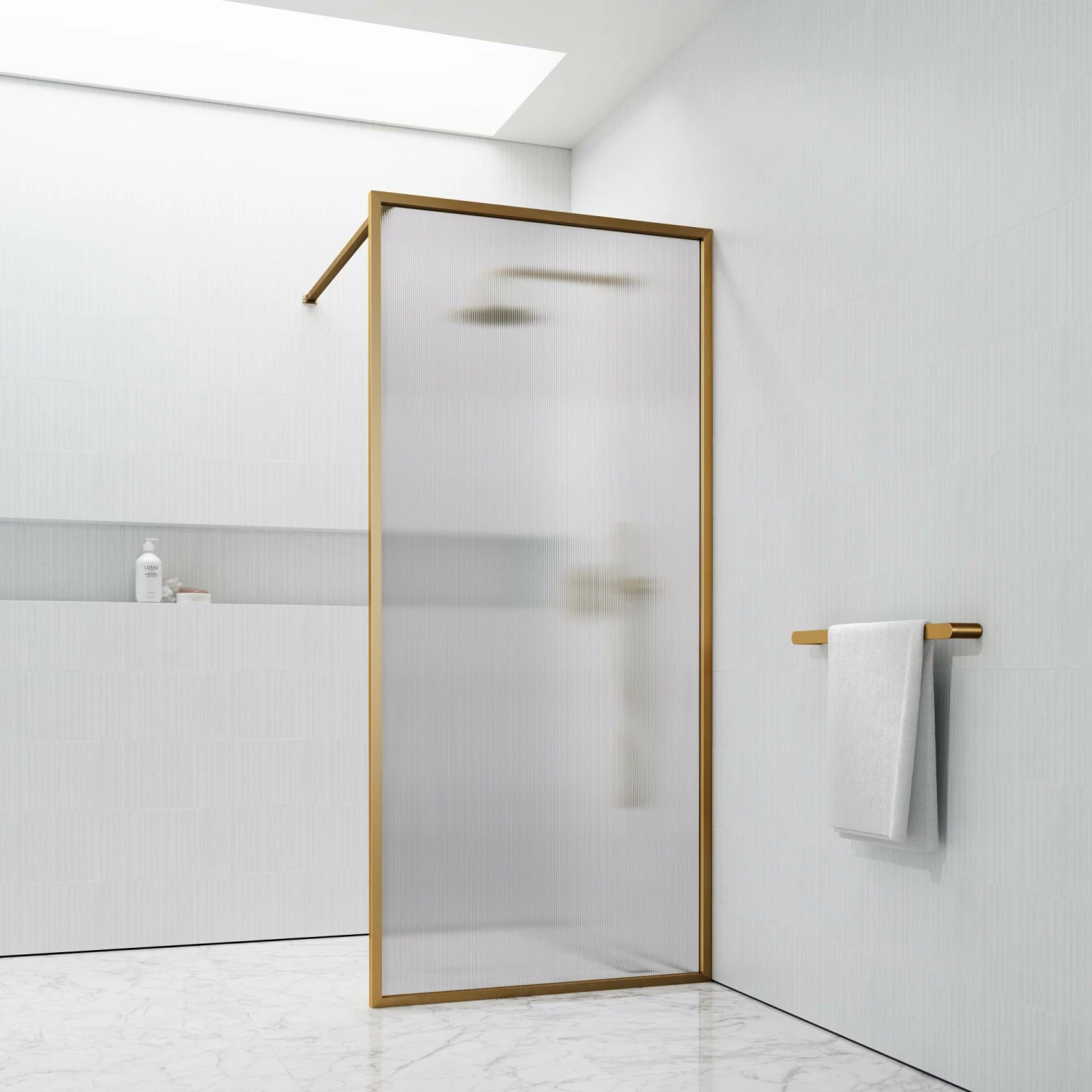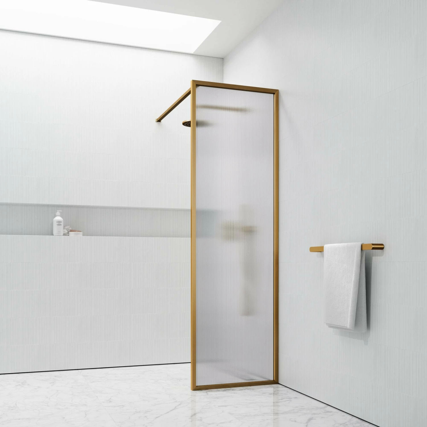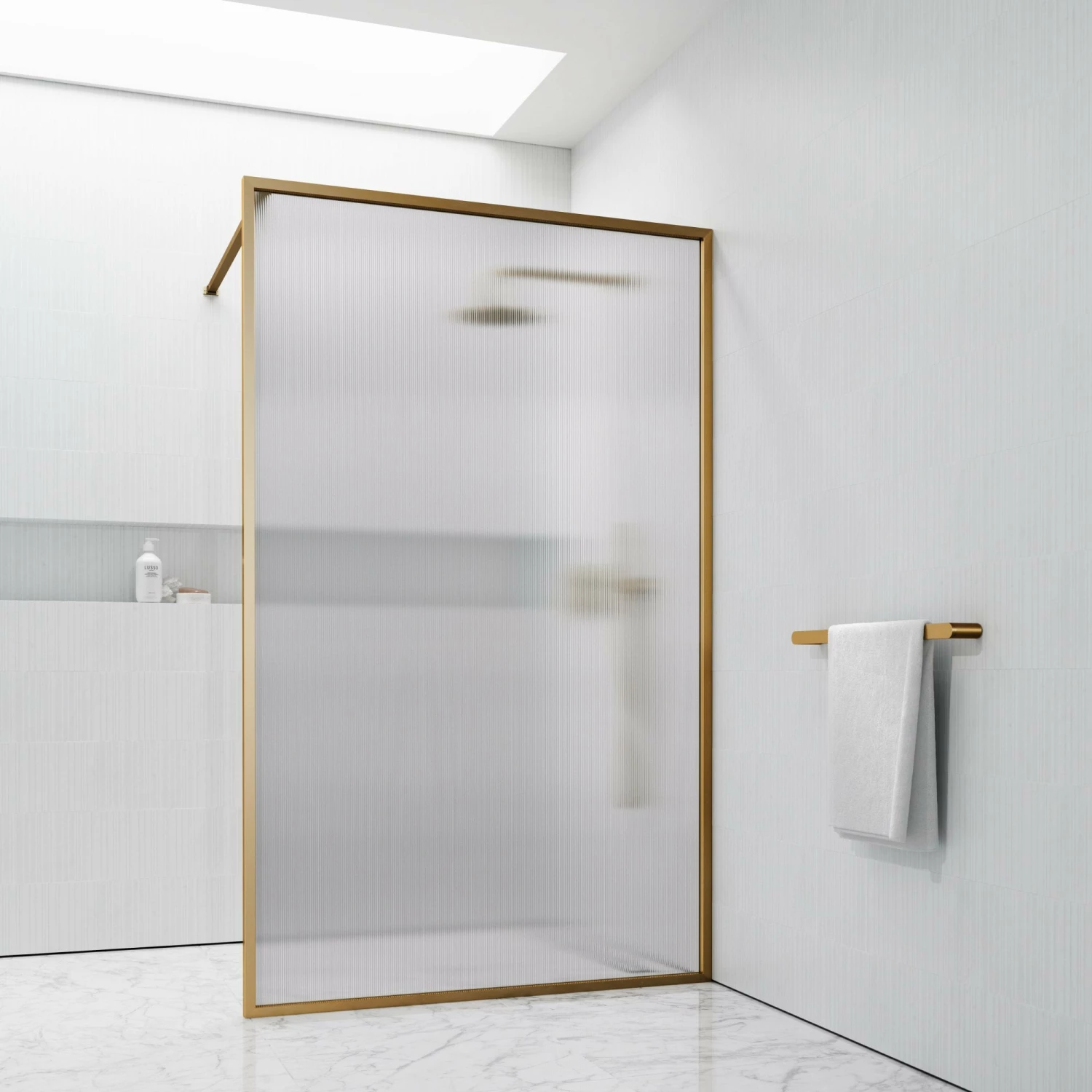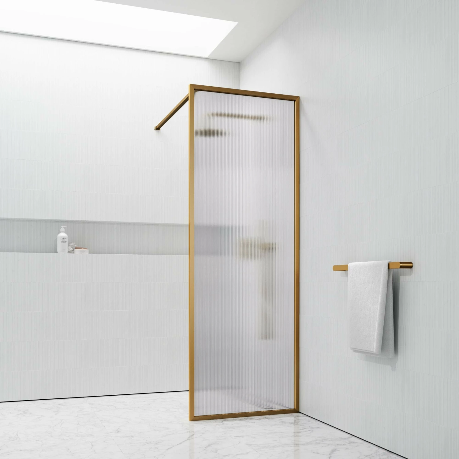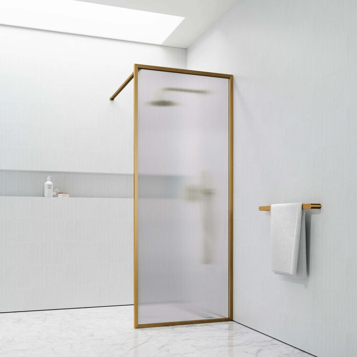 Bring an extra layer of luxury to your shower with this stunning brushed gold screen. Masterfully crafted with marine grade stainless steel and 8mm toughened reeded glass, this piece is designed to bring luxury and grandeur to your bathroom for years to come. The timeless styling of this opulence shower screen allows for seamless integration into classic and contemporary bathrooms alike. Simple yet versatile, the brushed gold finish grants effortless collaboration with other collections, such as our Luxe range. Purchase with confidence: this product comes with a 15 Year Guarantee.