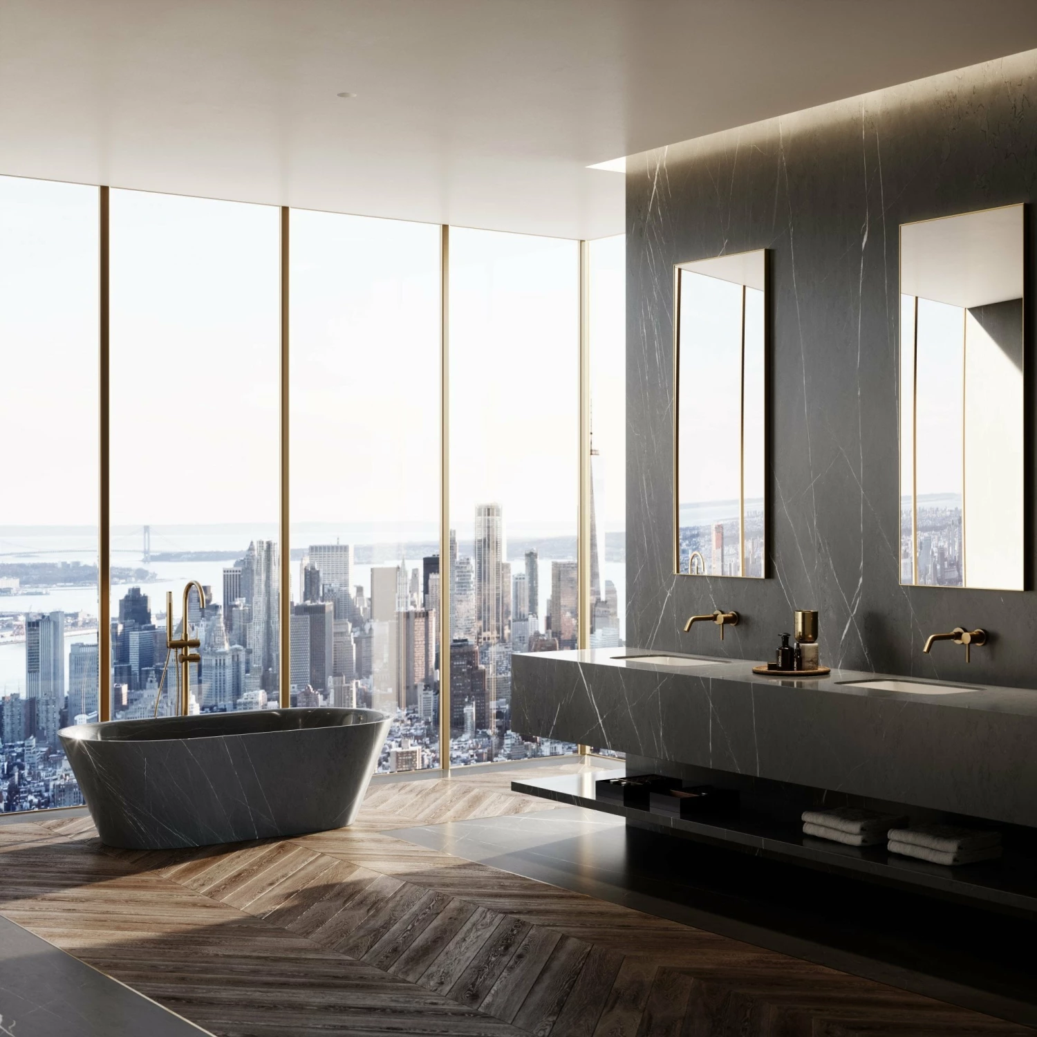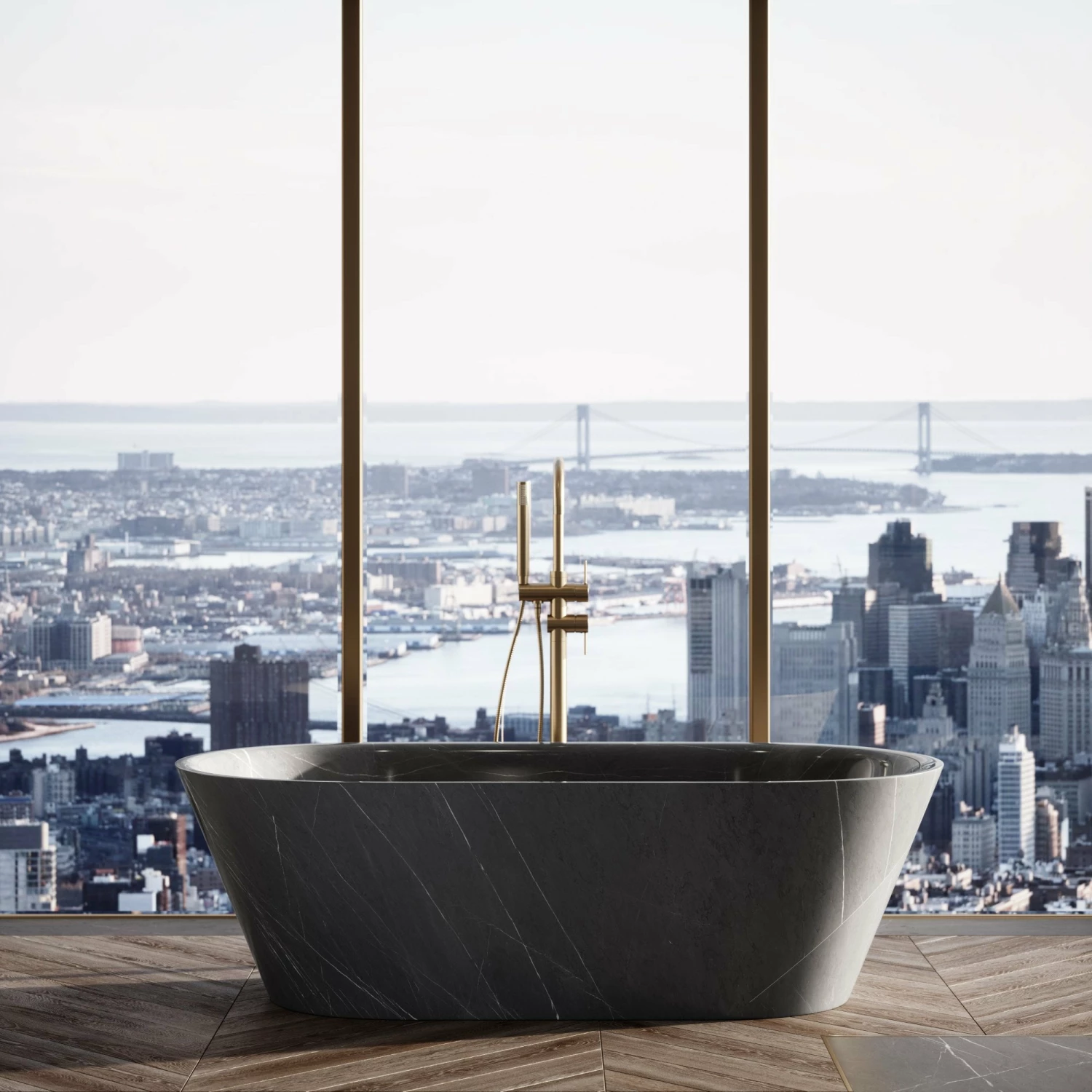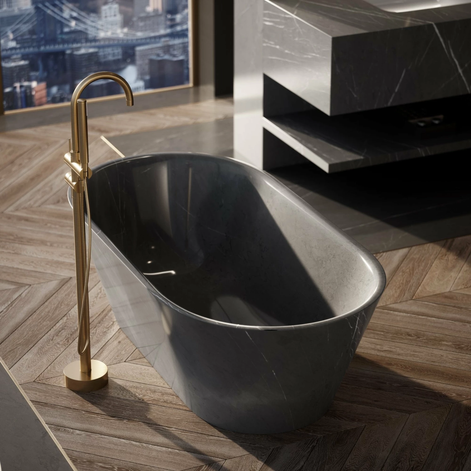 Exuding decadence and drama through its deep grey hues, the Muse bath boasts a handsomely luxurious appeal.