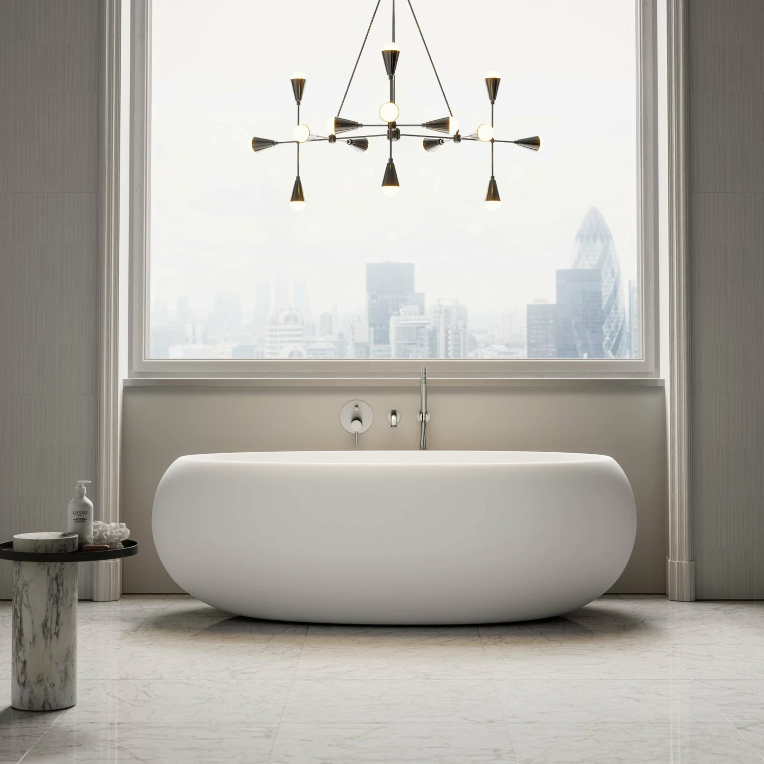 The Pod freestanding stone bath is a truly unique design, with expert craftsmanship exuding from this impeccable piece. This design merges modern glamour with timeless style, achieving a sleek profile through its curvaceous silhouette. If you’re looking to make your interior aspirations a reality, the Pod is a celebration of true craftsmanship and unparalleled artistry, adding uncompromised indulgence to your space. Complement the interior with our collection of floor-standing taps.