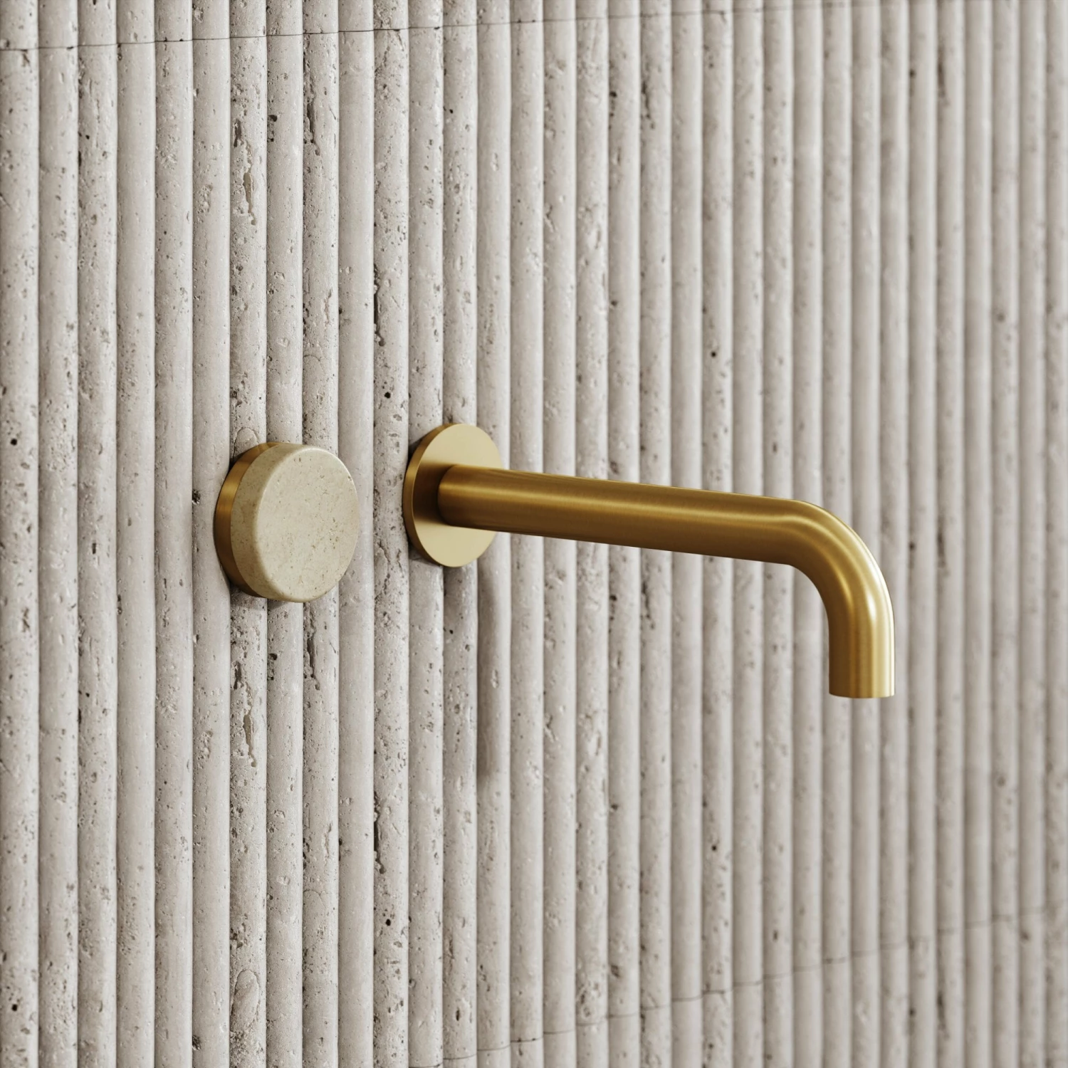 As part of the newly launched Pietra Porto collection, the wall mounted basin mixer tap is beautifully crafted, displaying a fine blend of brushed gold and the muted Crema Marfil. Carved from the same blocks of marble used for our Crema Marfil baths and basins, the Porto basin mixer showcases similar shades and markings throughout, perfect for styling with one another.