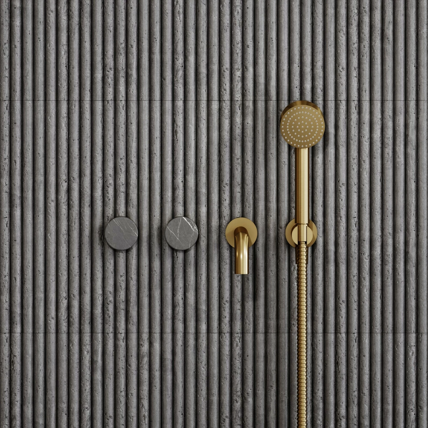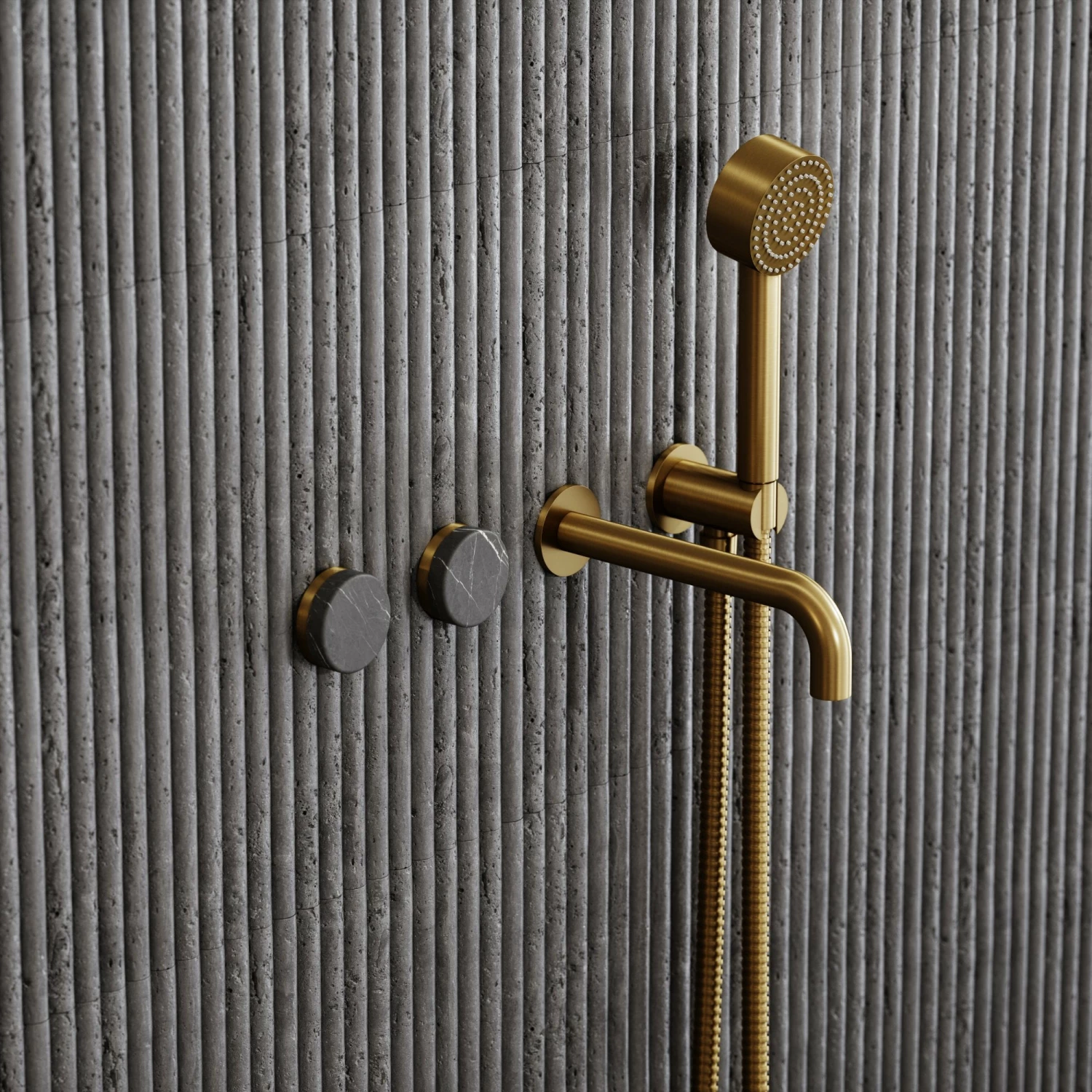 A perfect blend of design notes from our Lusso Stone and Pietra ranges, the Porto wall mounted bath filler is beautiful in appearance and premium in quality, showcasing the dramatic yet elegant Pietra Grey marble paired with regal brushed gold – a bestselling finish.