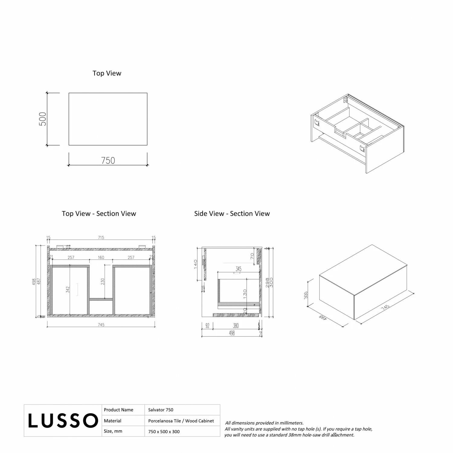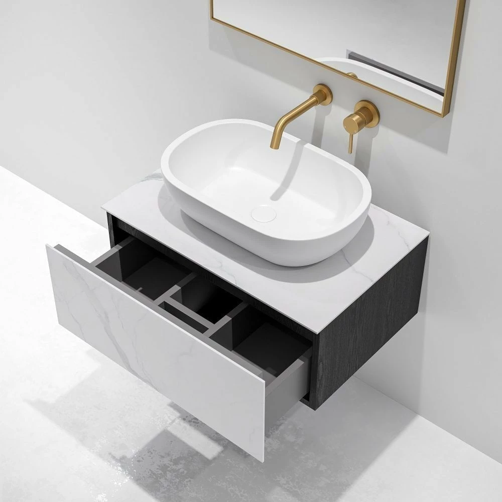 It has one large drawer which has a push open release system. The basin pictured in the image is the Lusso Picasso (not included).