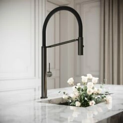 Livello Pull Out Kitchen Tap In Matte Black & Vello Undermount Kitchen Sink Black Gunmetal