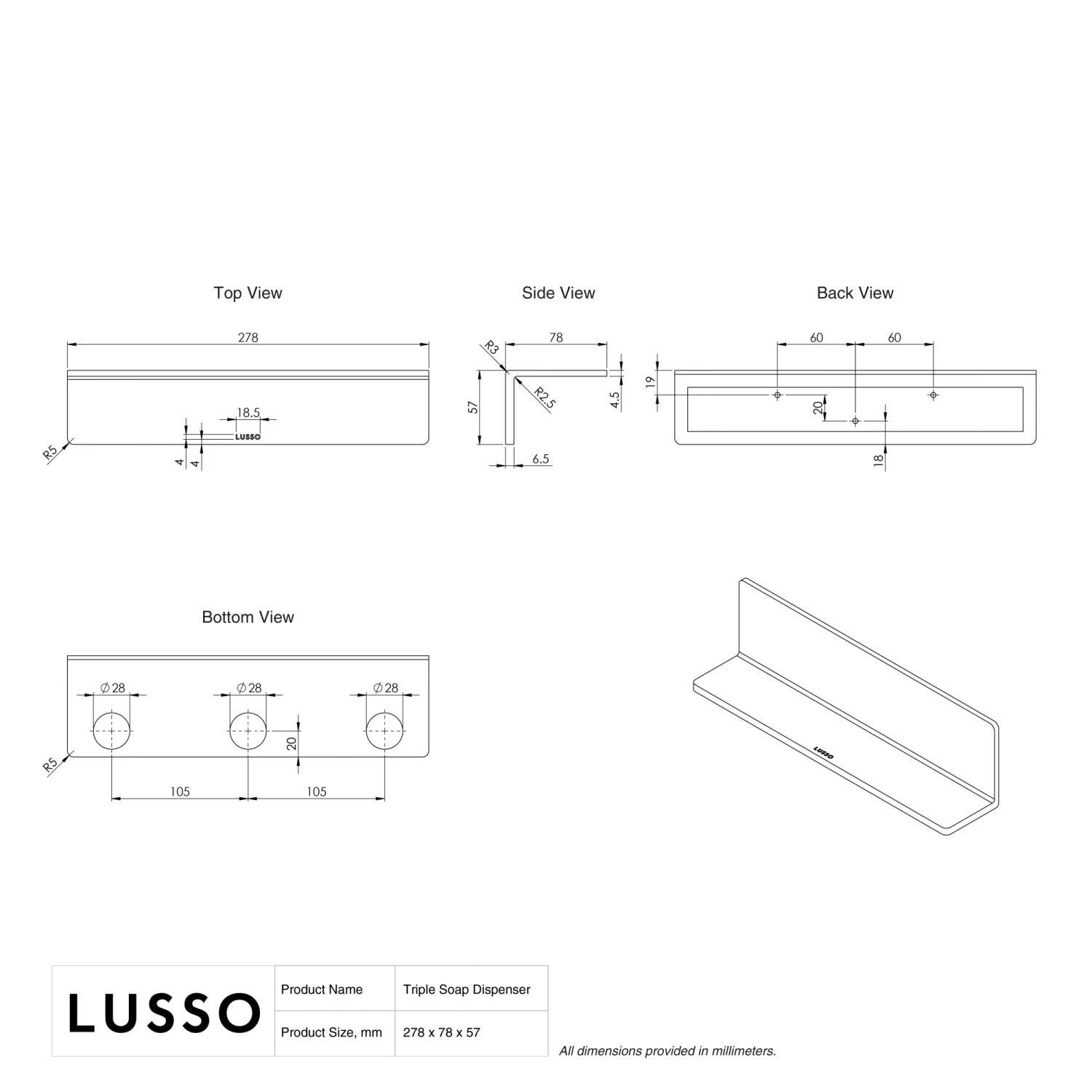 The triple soap dispenser wall bracket is practically designed, created to offer simple, uncluttered living.