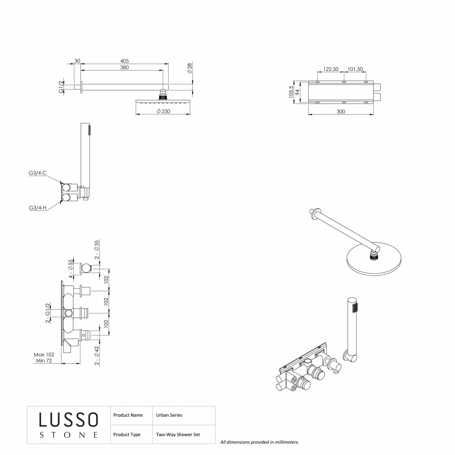 Product Type: Thermostatic 2-Way Shower