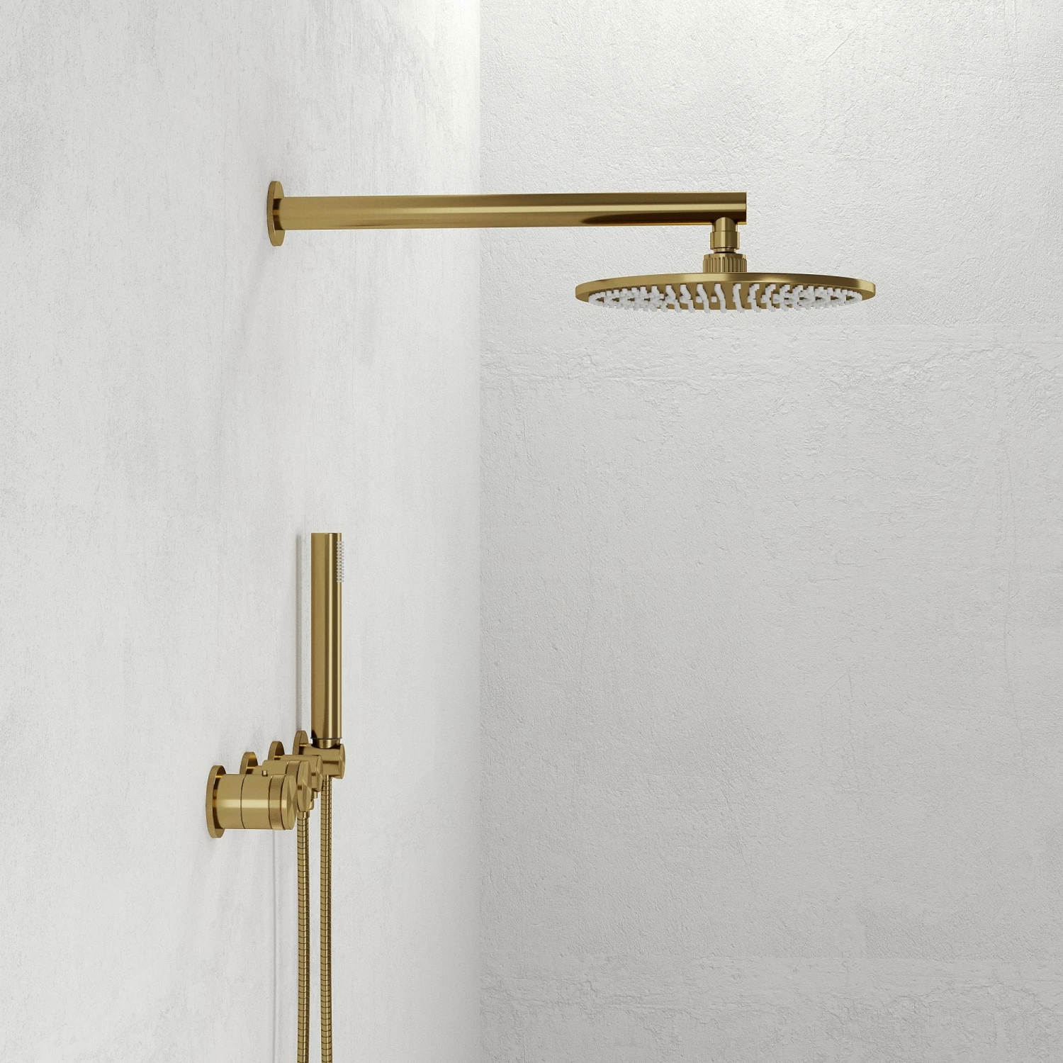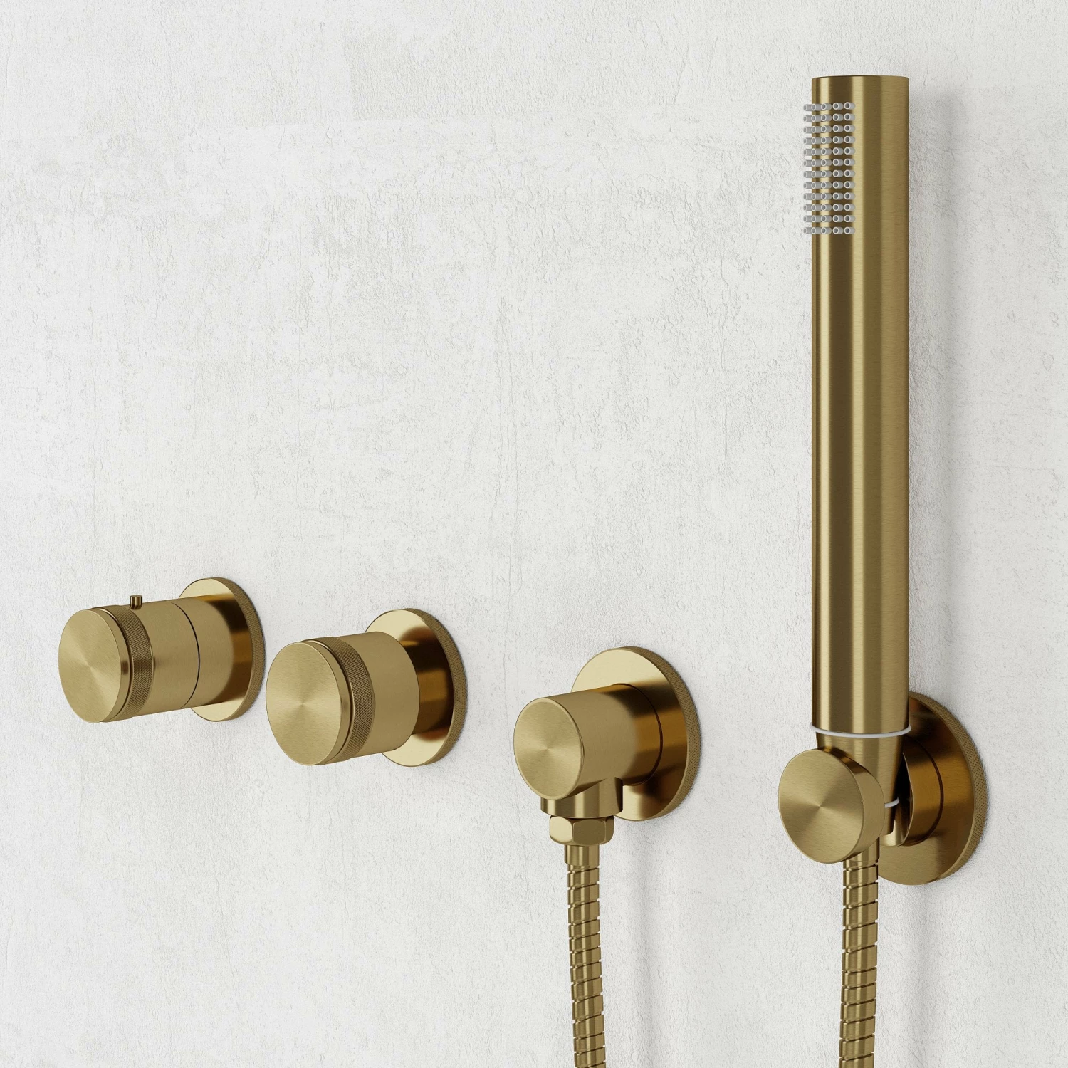 With its immaculate brushed gold finish, the shower suits both traditional and contemporary interiors, and creates a cohesive look when paired with our wider collection of brushed gold brassware and accessories. Across its tap handles it also features subtle knurled detailing, influenced by the diamond patterning found within the interiors of luxury motorcars.