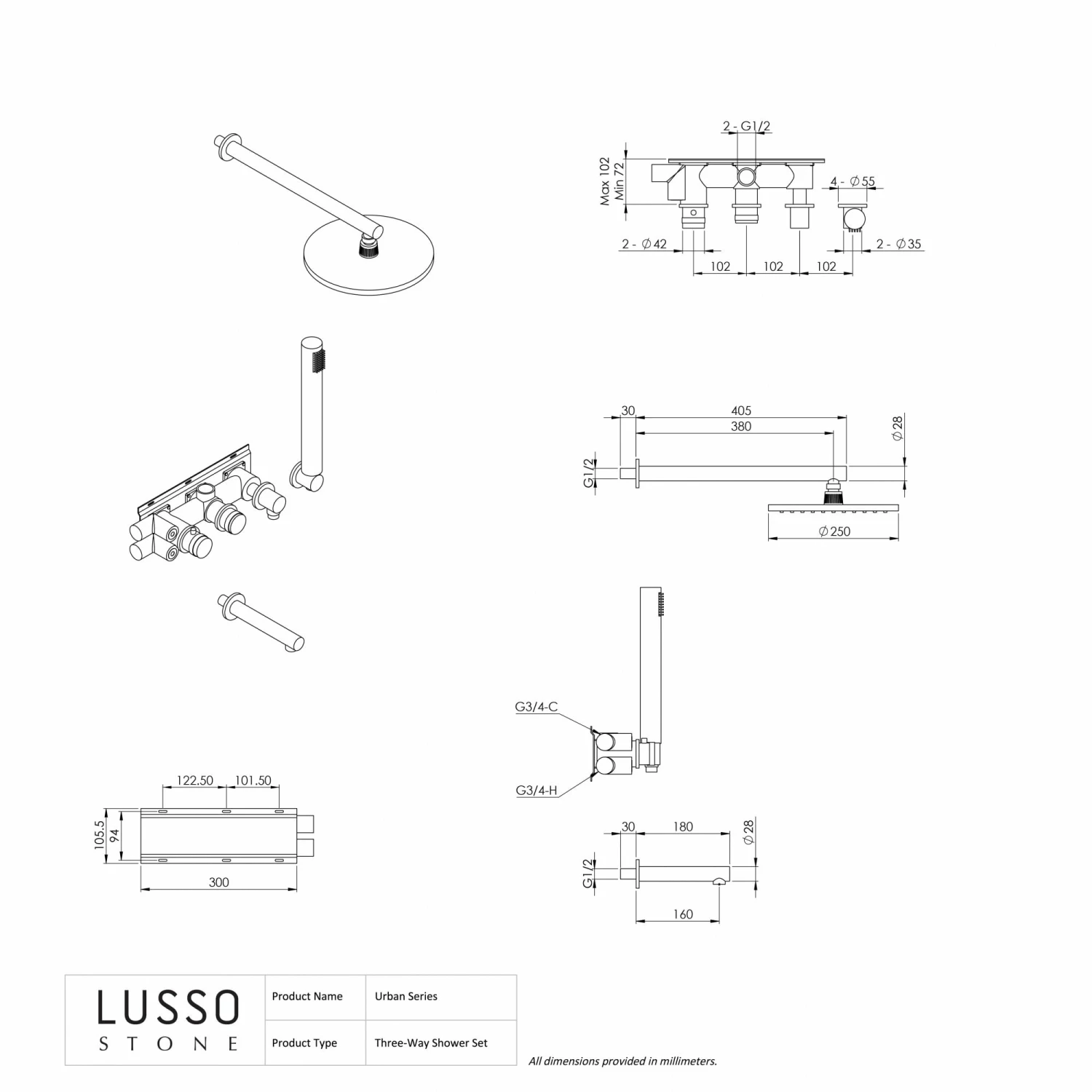 Product Type: Thermostatic 3-Way Shower