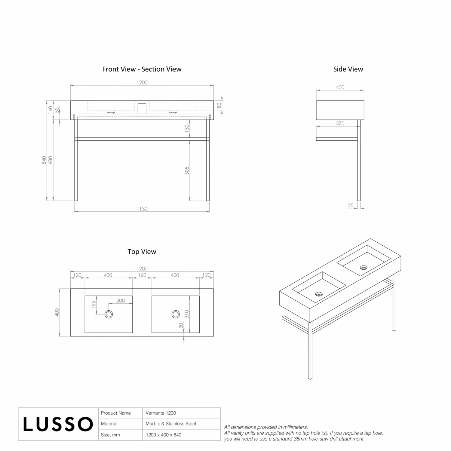 A consciously designed duo vanity, the charismatic double basins seamlessly sit a-top a weightless stainless steel structure. With a combination of smooth honed curves, the serene surface of marble, and soft satin legs; the double Vernante is a truly enriching piece which strives to incorporate stylish practical everyday use.