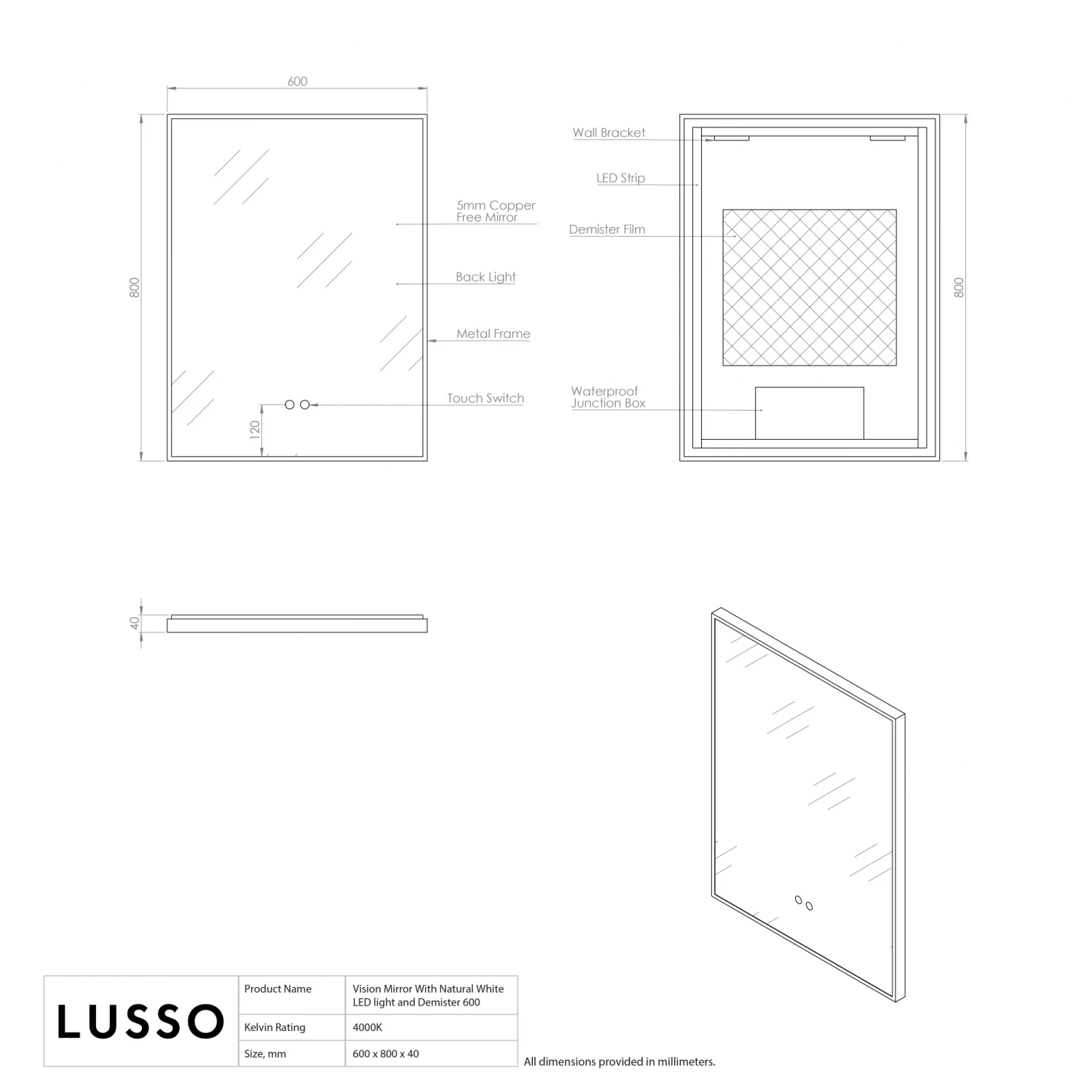 The Vision LED Mirror adds the flawless finishing touch to your home. It can be styled in any room, including dressing rooms, cloakrooms and bathrooms.