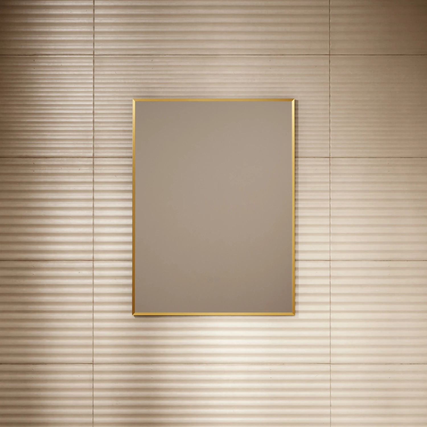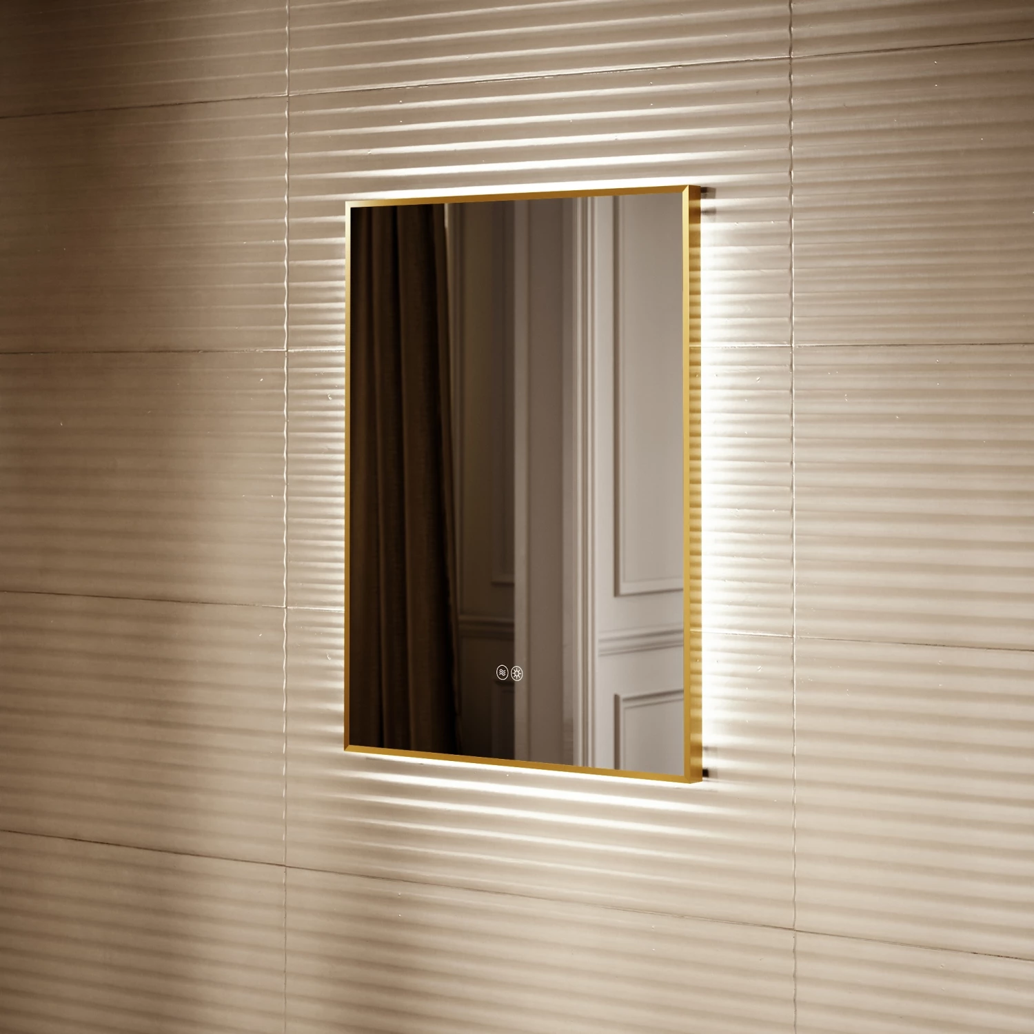 At a width of 600mm, the back lit mirror sits plush against the wall as a focal point. Providing both functionality and beauty, with its touch control LED light and regal brushed gold finish.
