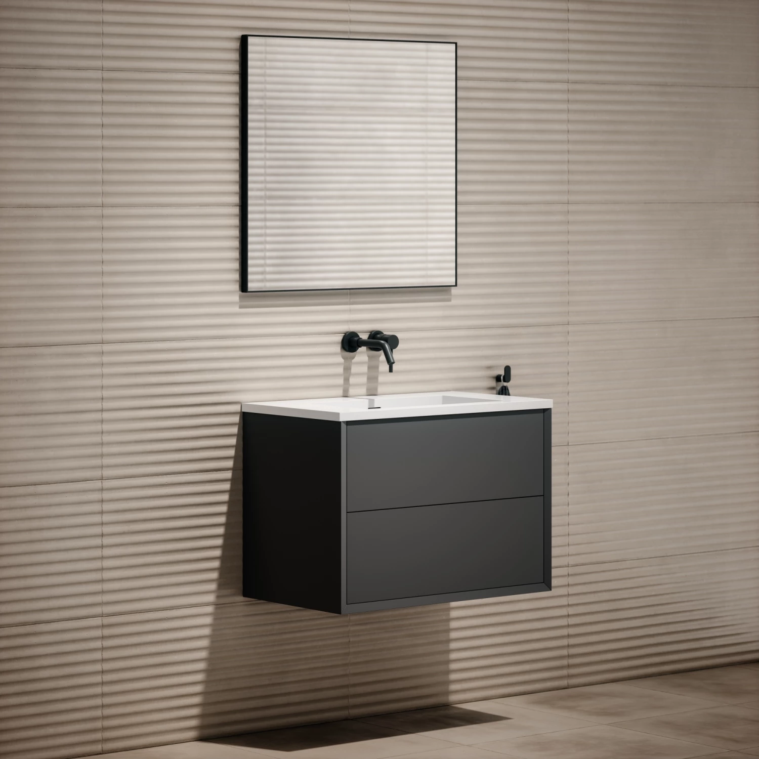 This Matte Anthracite 800mm Bathroom Vanity Unit is manufactured to impeccably high standards with the drawers opened by a spring release Blum drawer system.